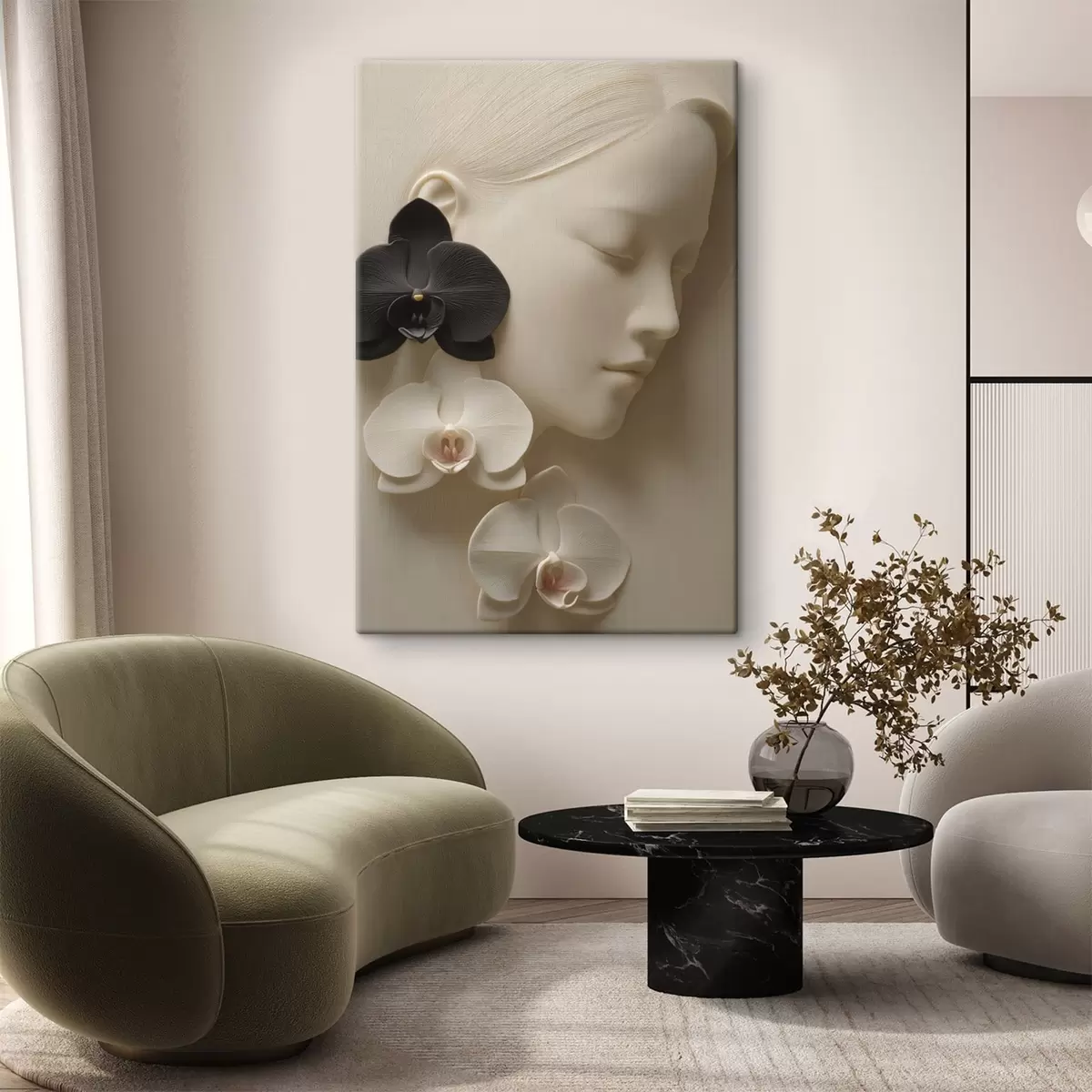 Obraz dívka s orchidejemi v basreliéfním stylu Č. s47941