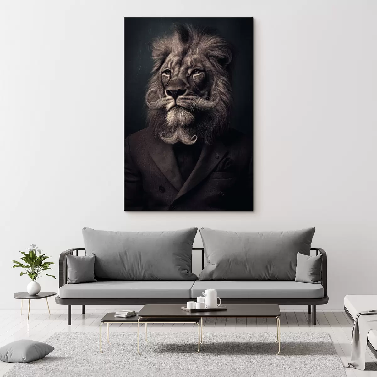Obraz lev s vousy ve stylu holičství Č. s47947