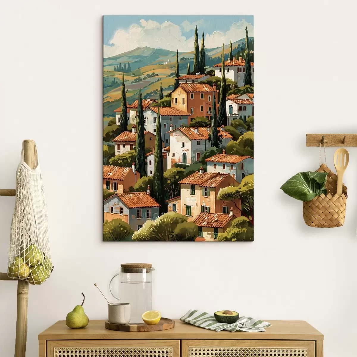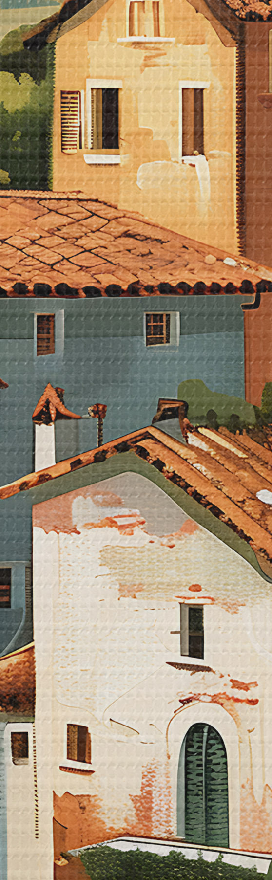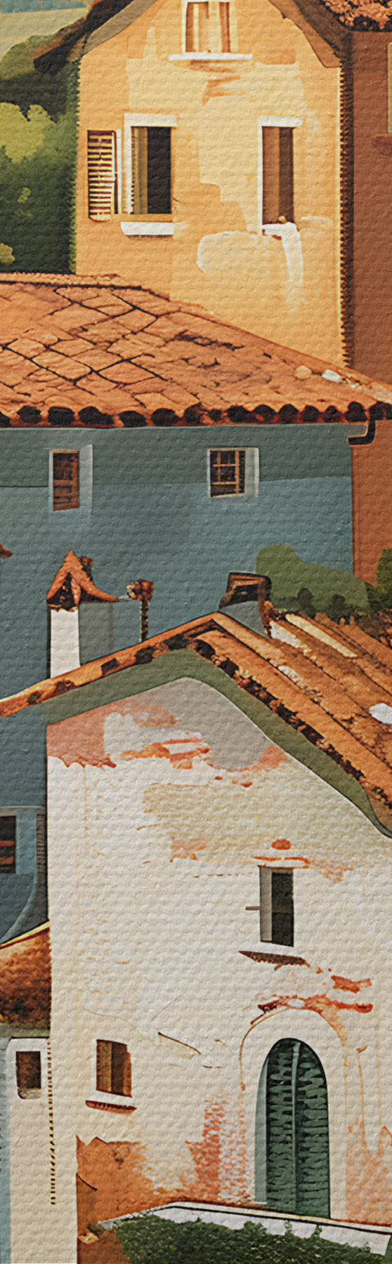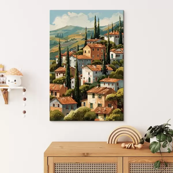 Obraz středomořská vesnice na svahu, domy v teplých barvách s terakotovými střechami Č. s47951