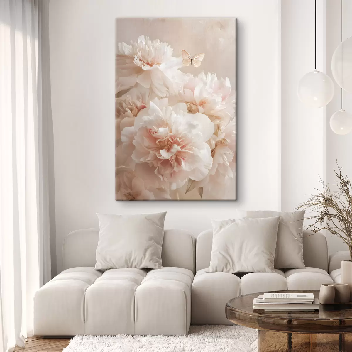 Obraz bujné růžové pivoňky s motýlem Č. s47954