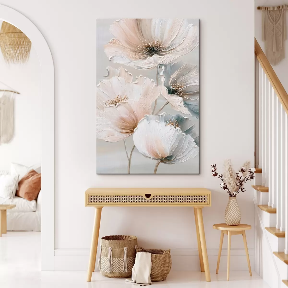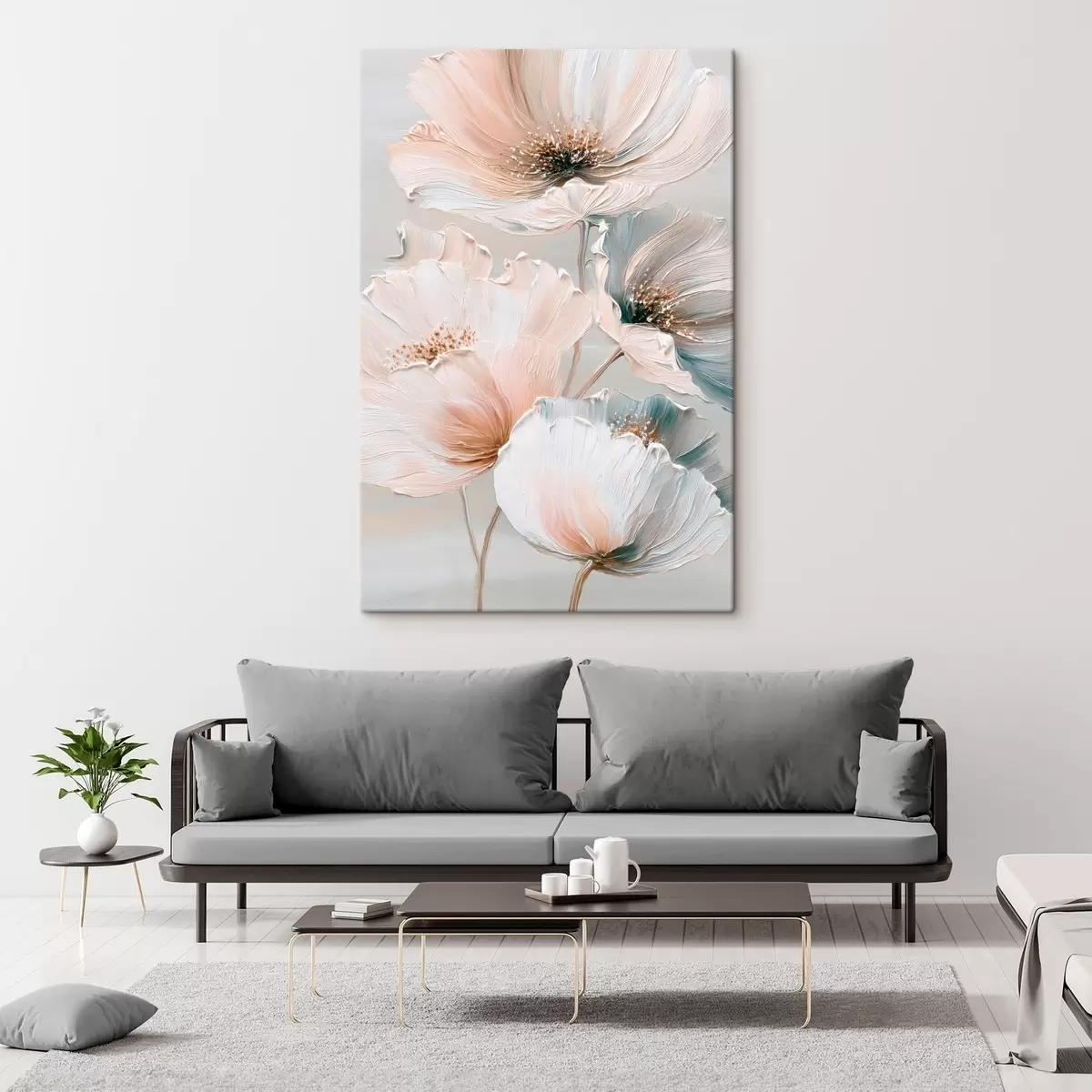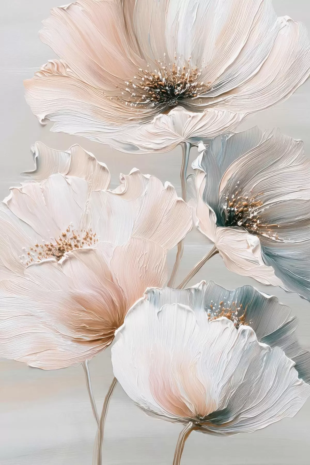 Obraz Květinová kompozice s texturovanými tahy štětcem v béžovo-růžové paletě Č. s47961
