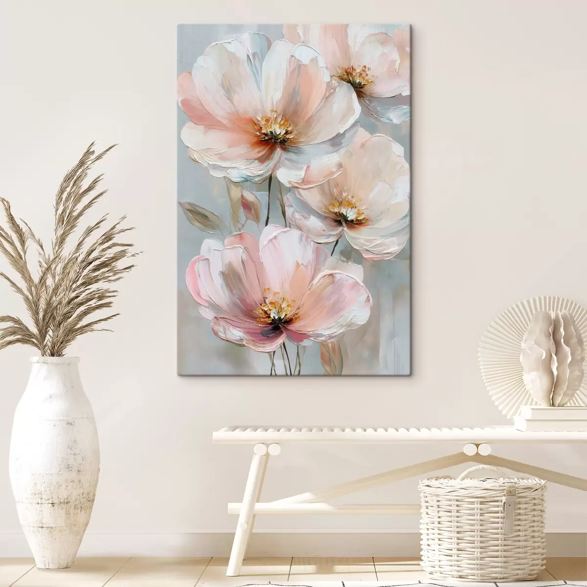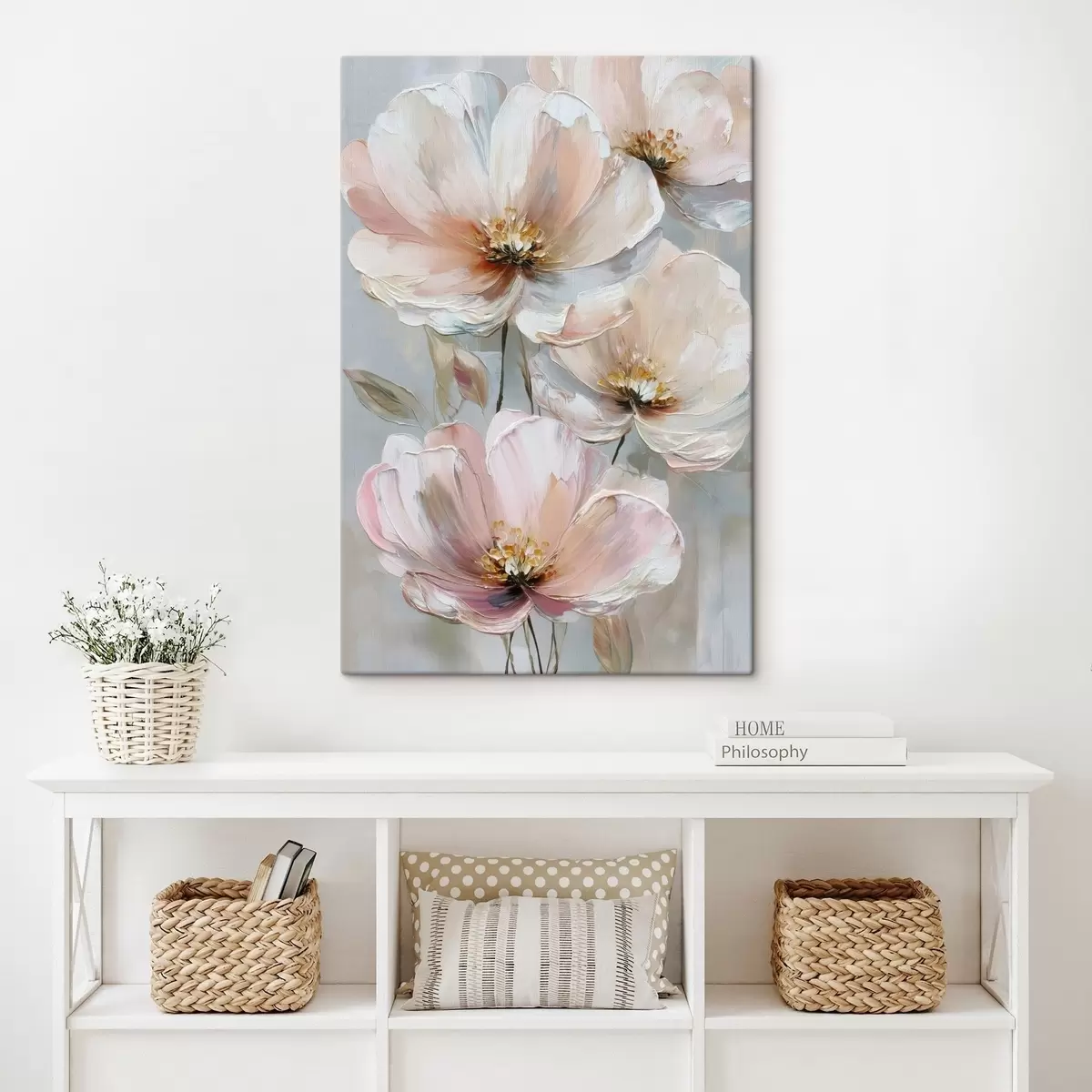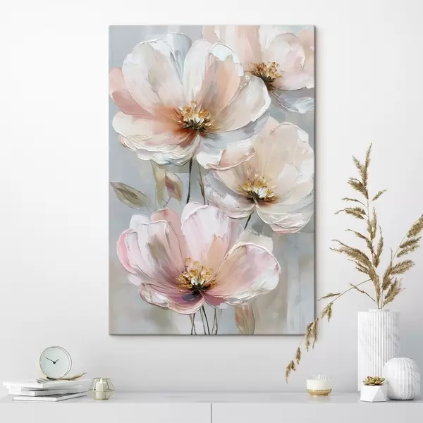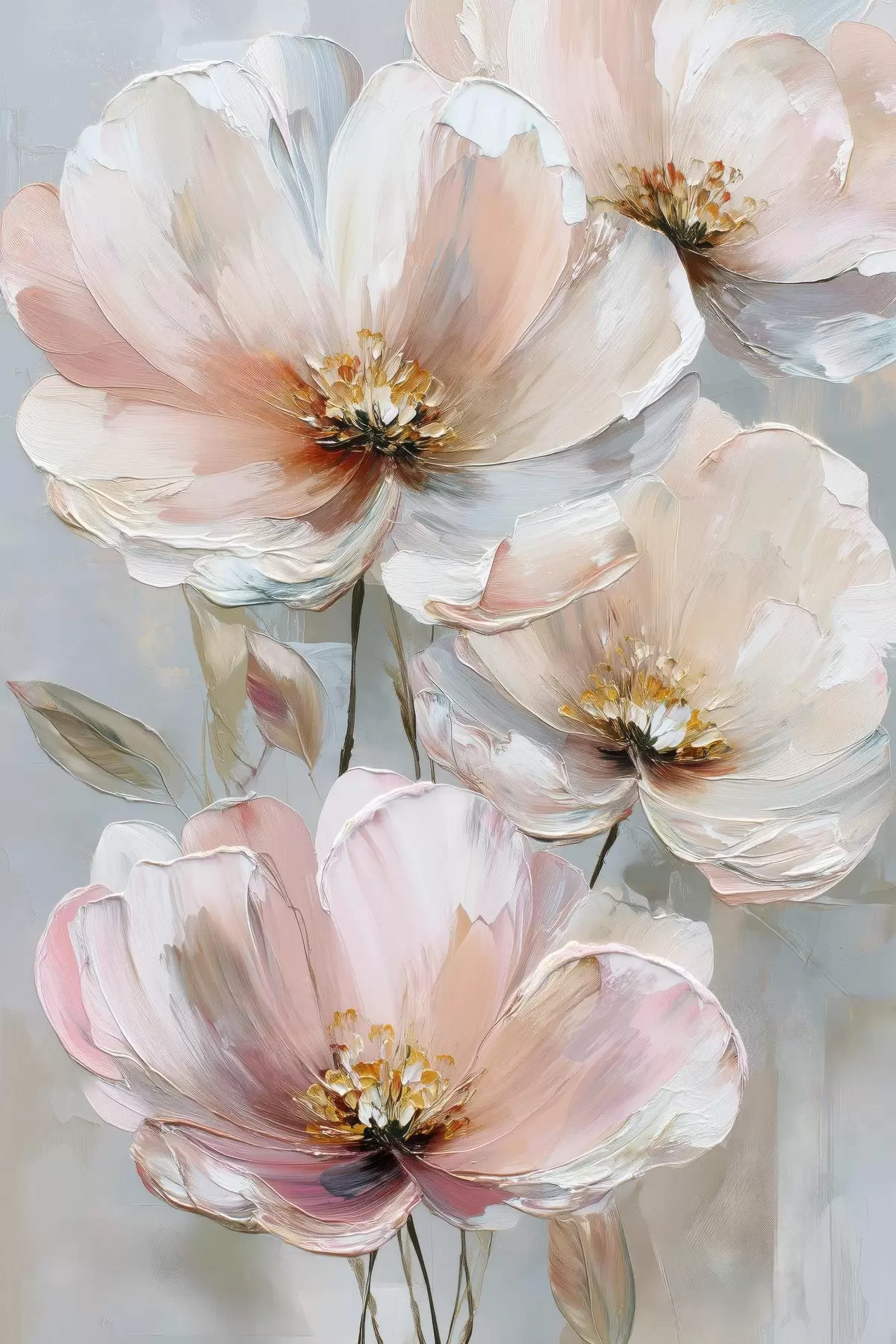 Obraz Bílo-růžové květy s výraznými tahy štětcem ve stylu olejomalby Č. s47962