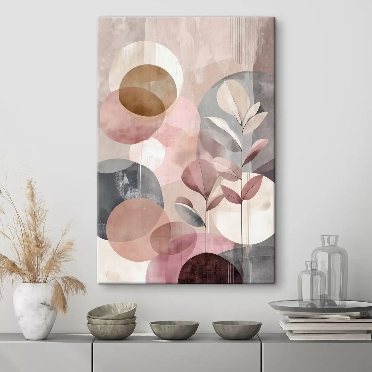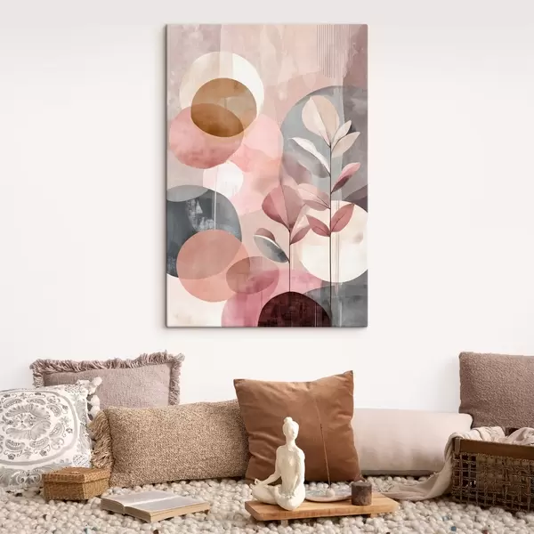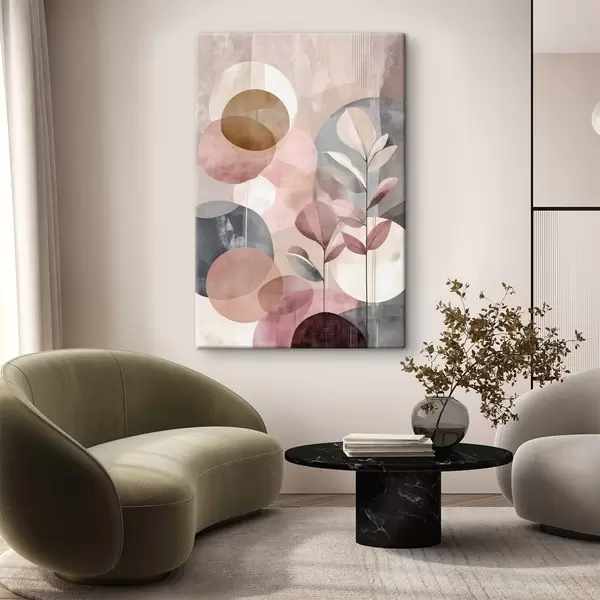 Obraz Abstraktní kompozice s kruhy v terakotově růžové paletě Č. s47977