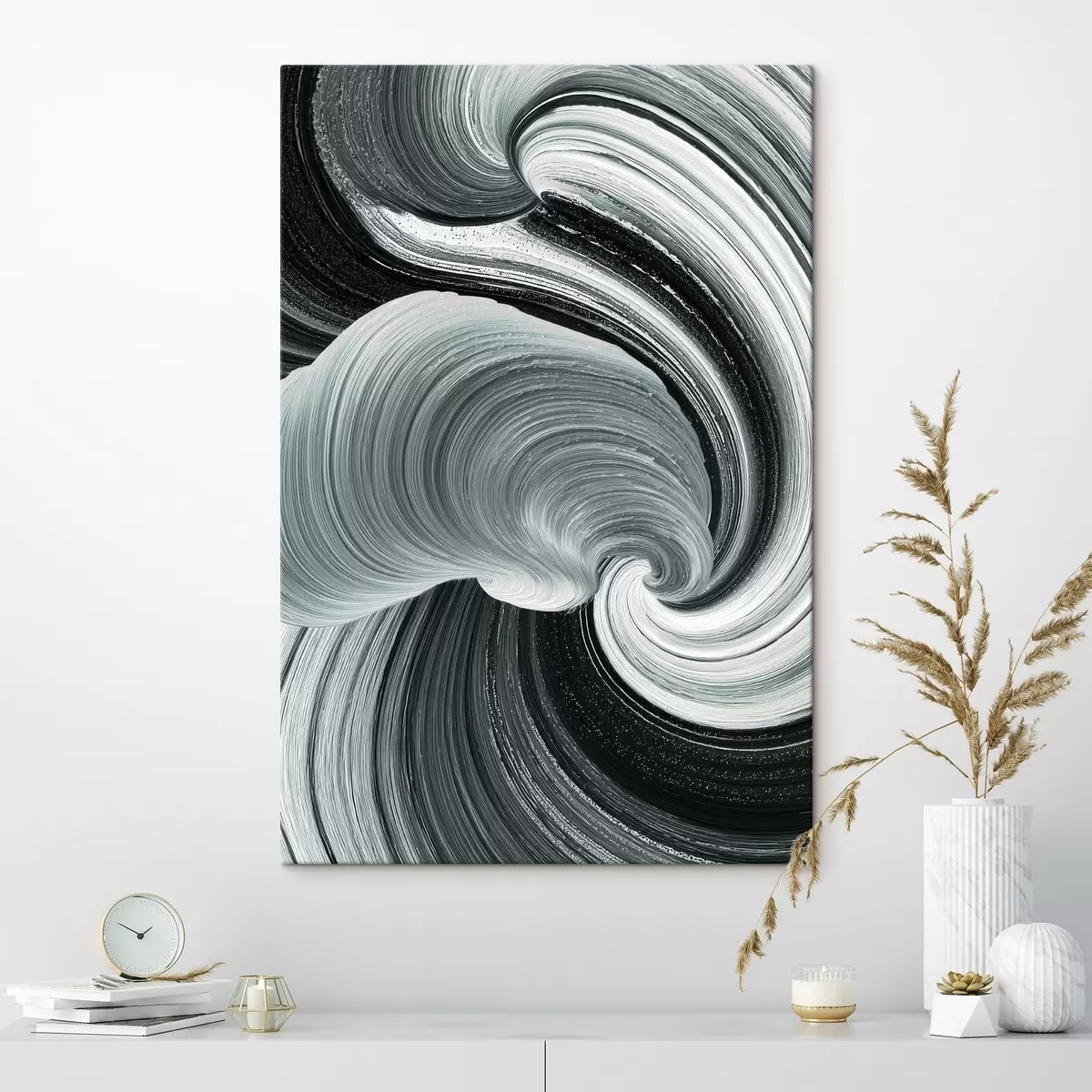 Obraz Energie pohybu: černobílá abstrakce ve stylu olejomalby Č. s47990