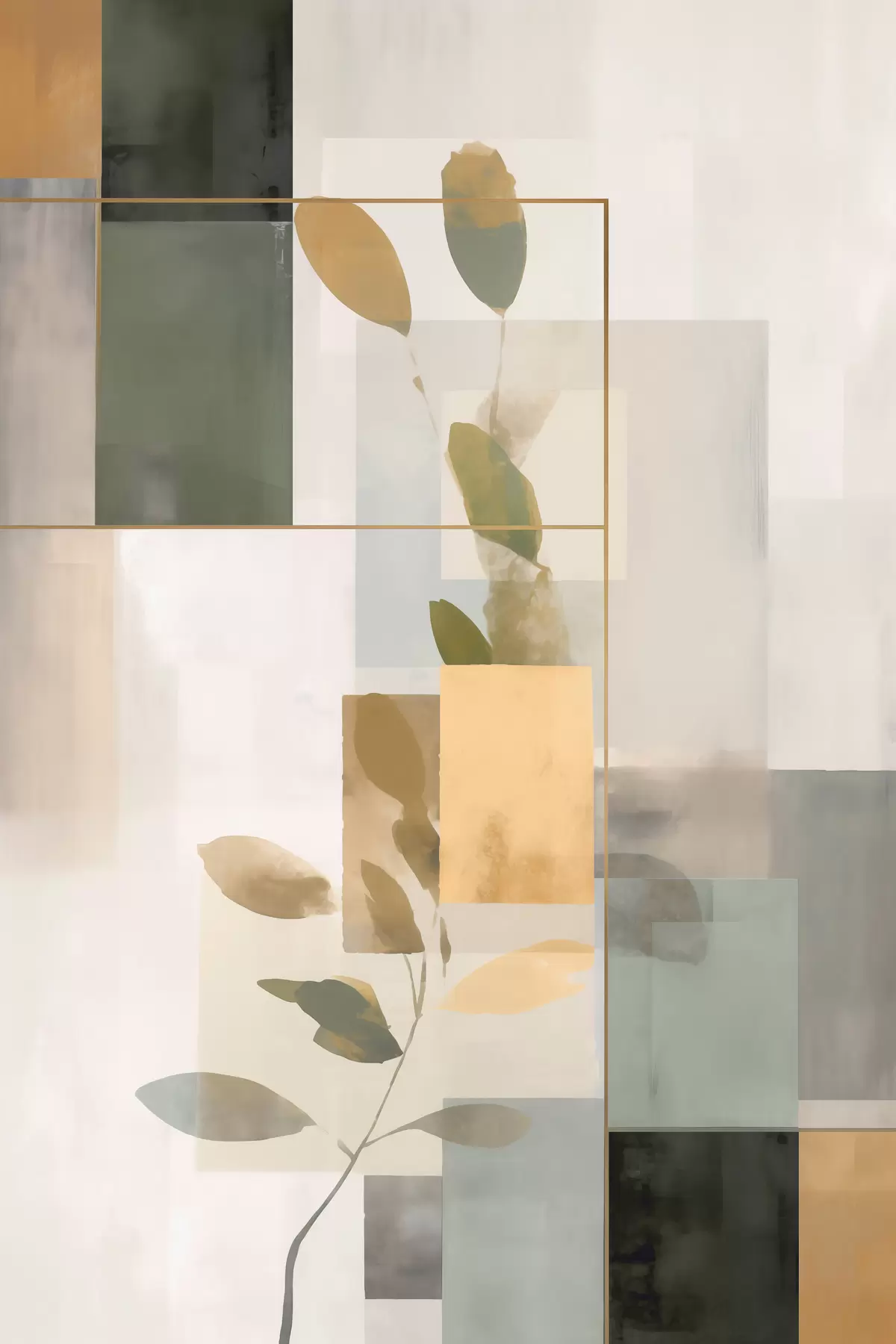 Obraz Geometrická abstrakce s větvemi listů Č. s48020