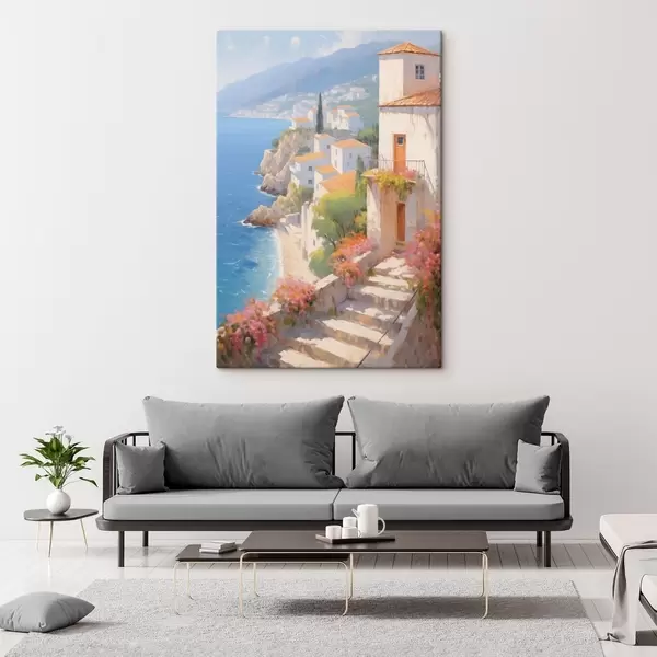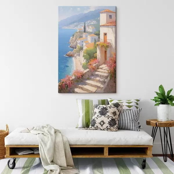 Obraz impresionistická středomořská vesnice na útesu Č. s48060