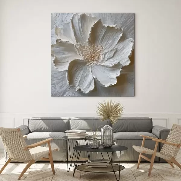 Obraz bílá sádrová reliéfní květinová socha Č. s48064