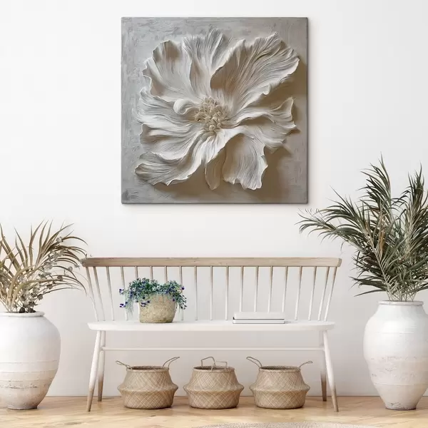 Obraz bílá sádrová reliéfní květinová socha Č. s48065