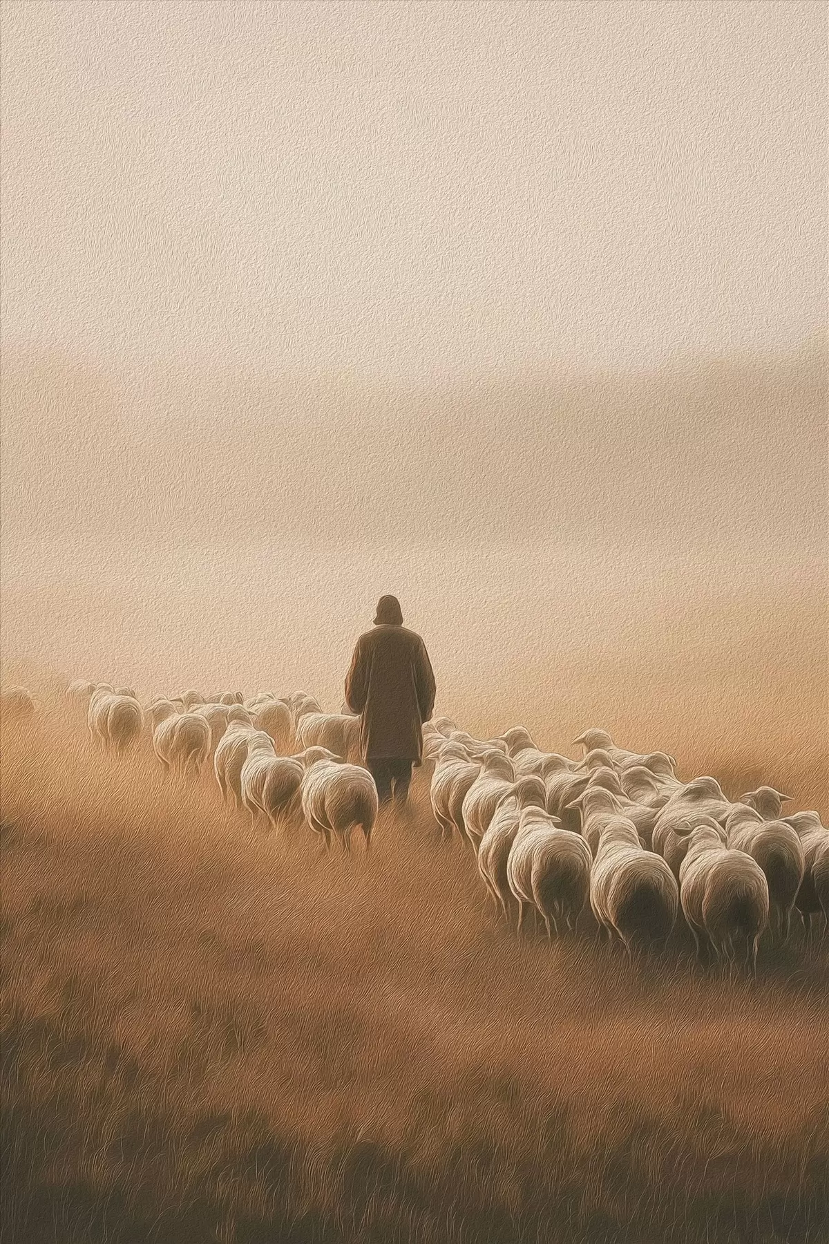 Obraz pastýř kráčející s ovčím stádem na otevřeném poli Č. s48077