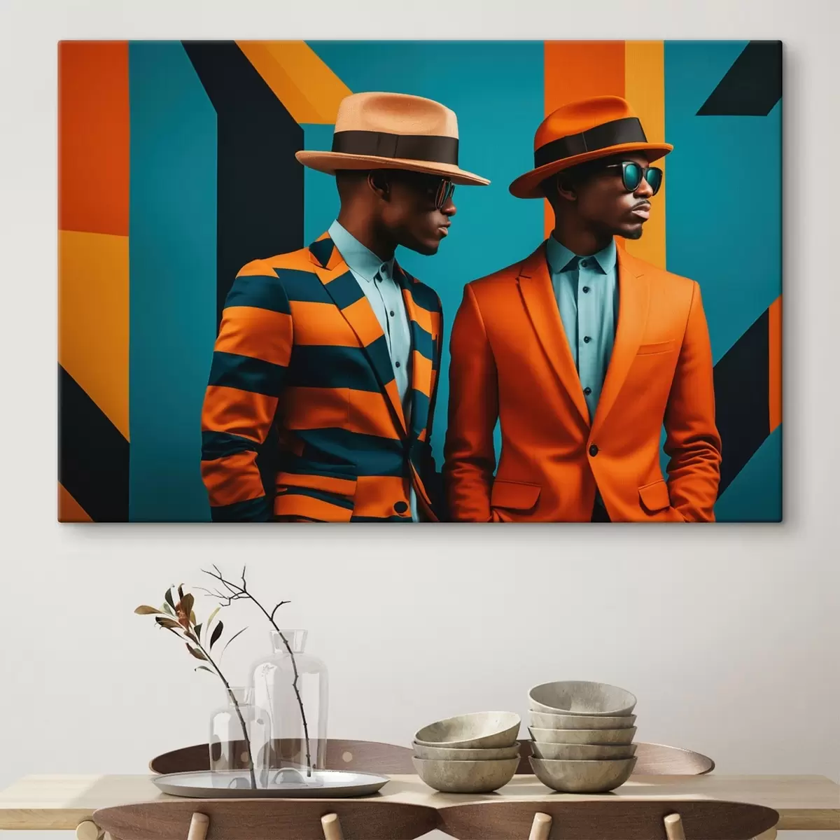 Obraz Dva muži v jasných oblecích a kloboucích Č. s48091