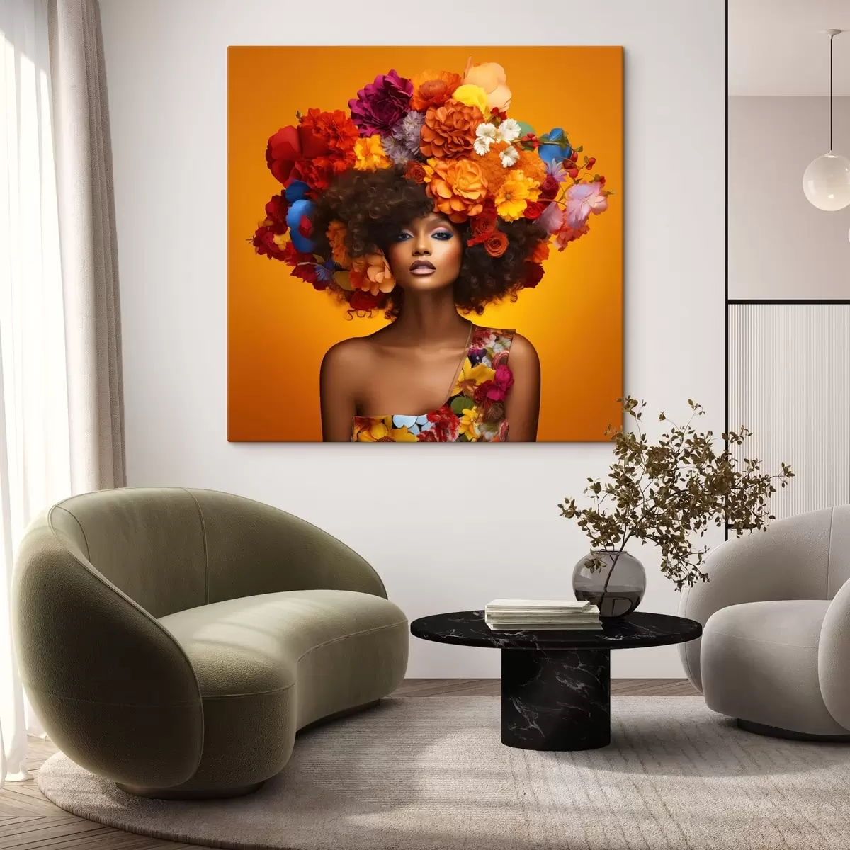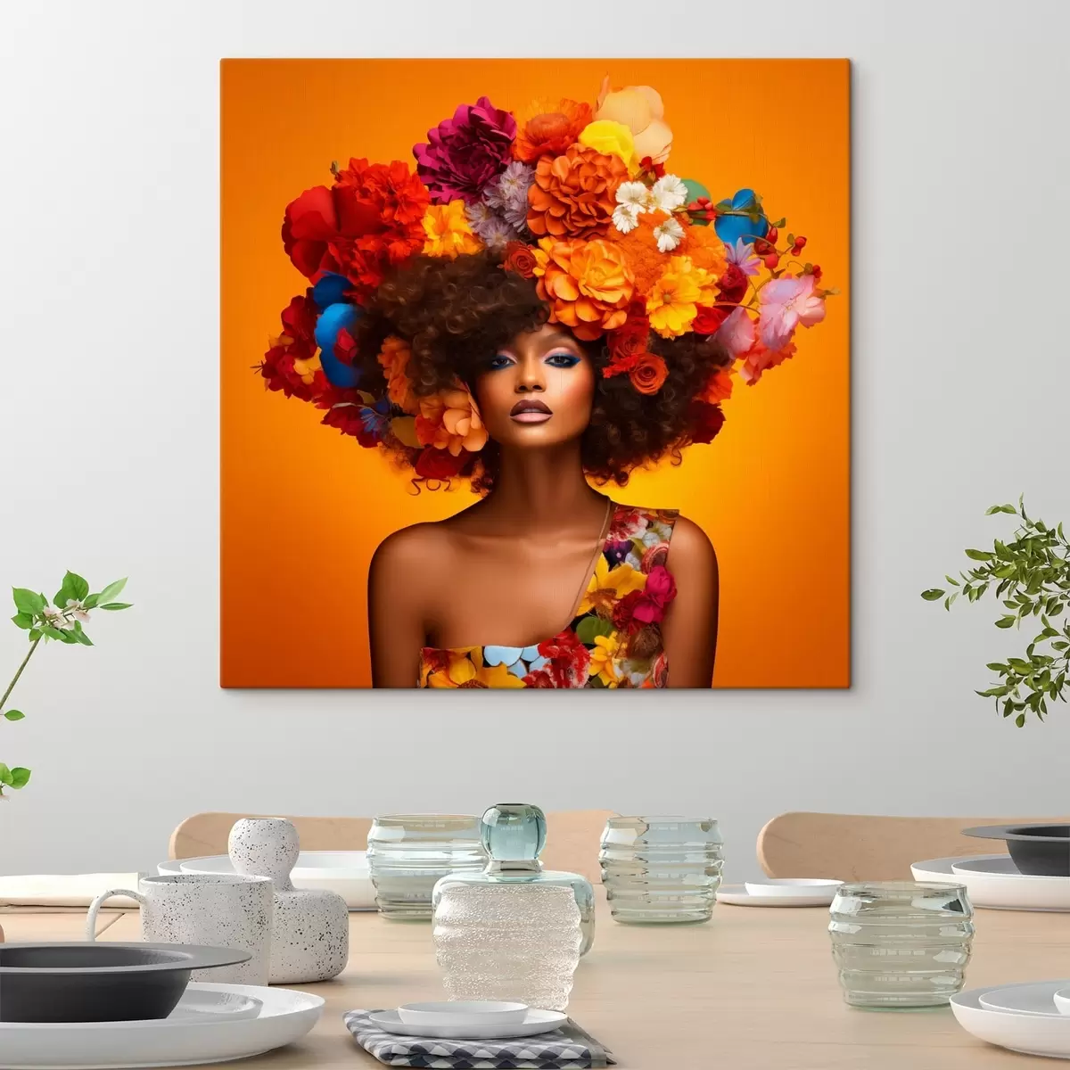 Obraz Žena s květinovou čelenkou na oranžovém pozadí Č. s48102