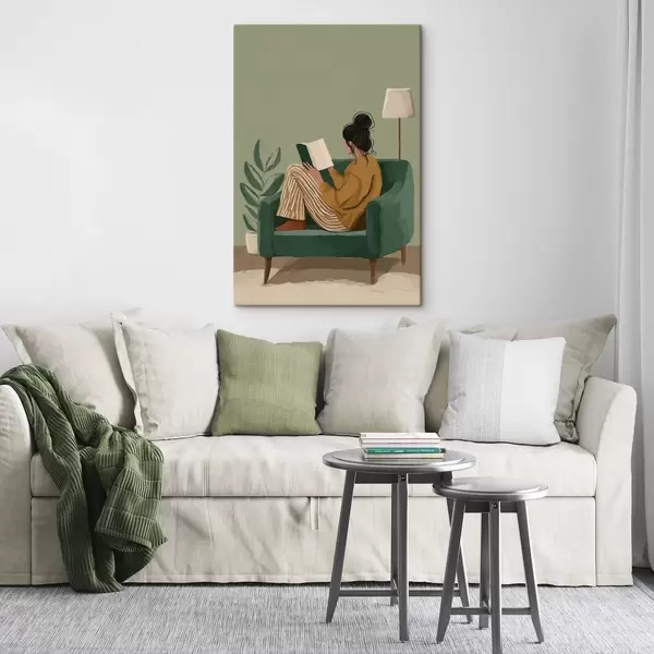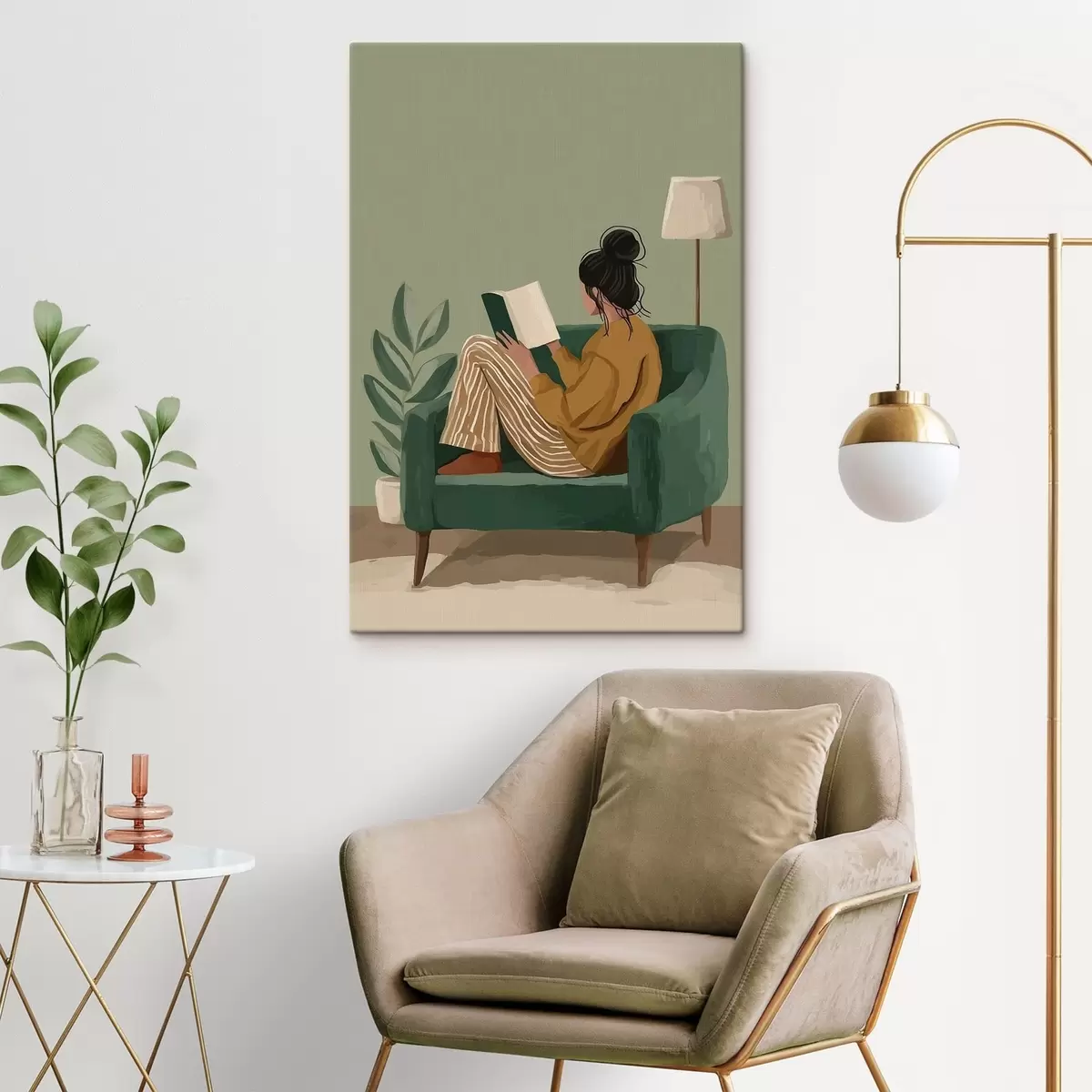 Obraz minimalistická útulná ilustrace ženy sedící v křesle a čtoucí knihu Č. s48118