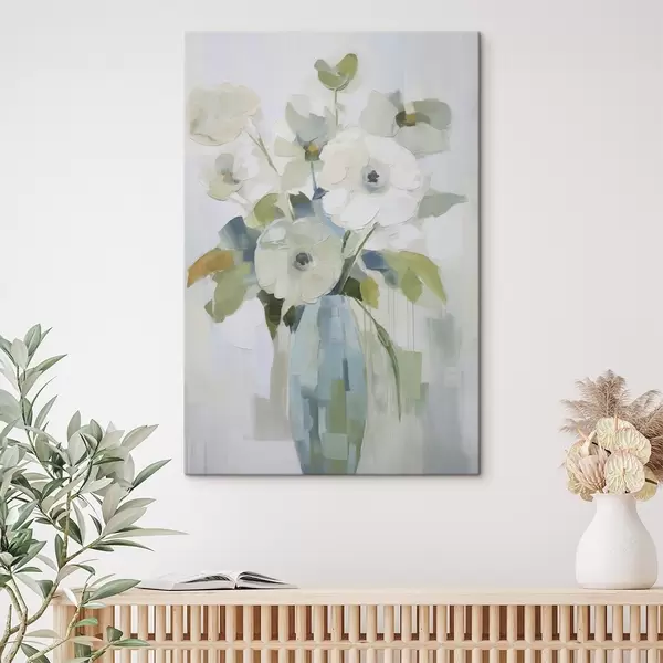 Obraz Květiny s listovím ve váze, imitace malby Č. s48168