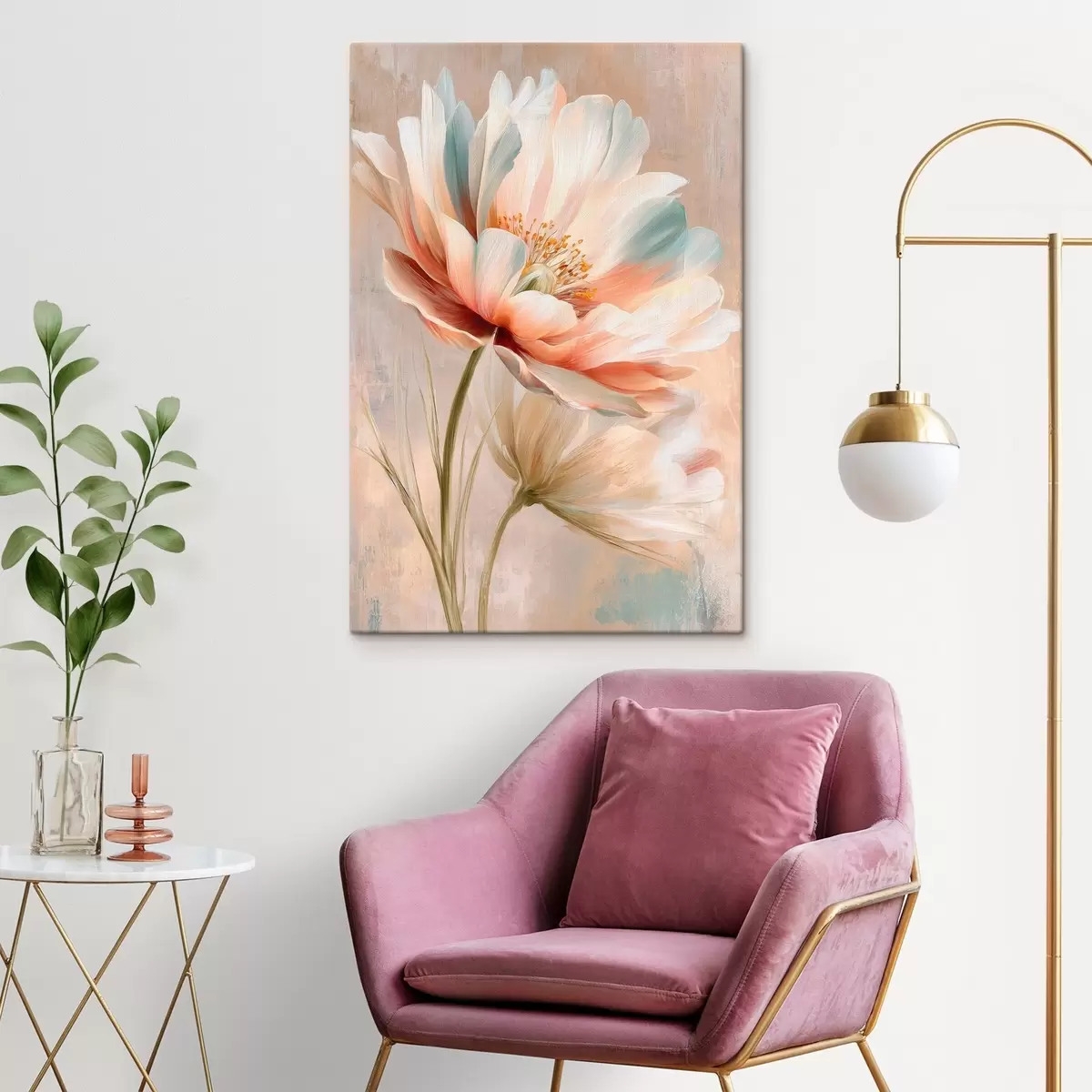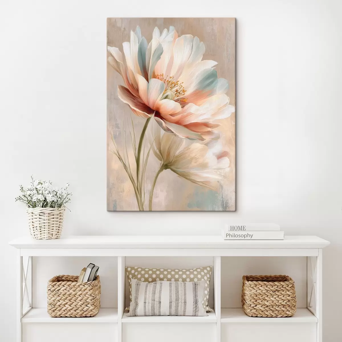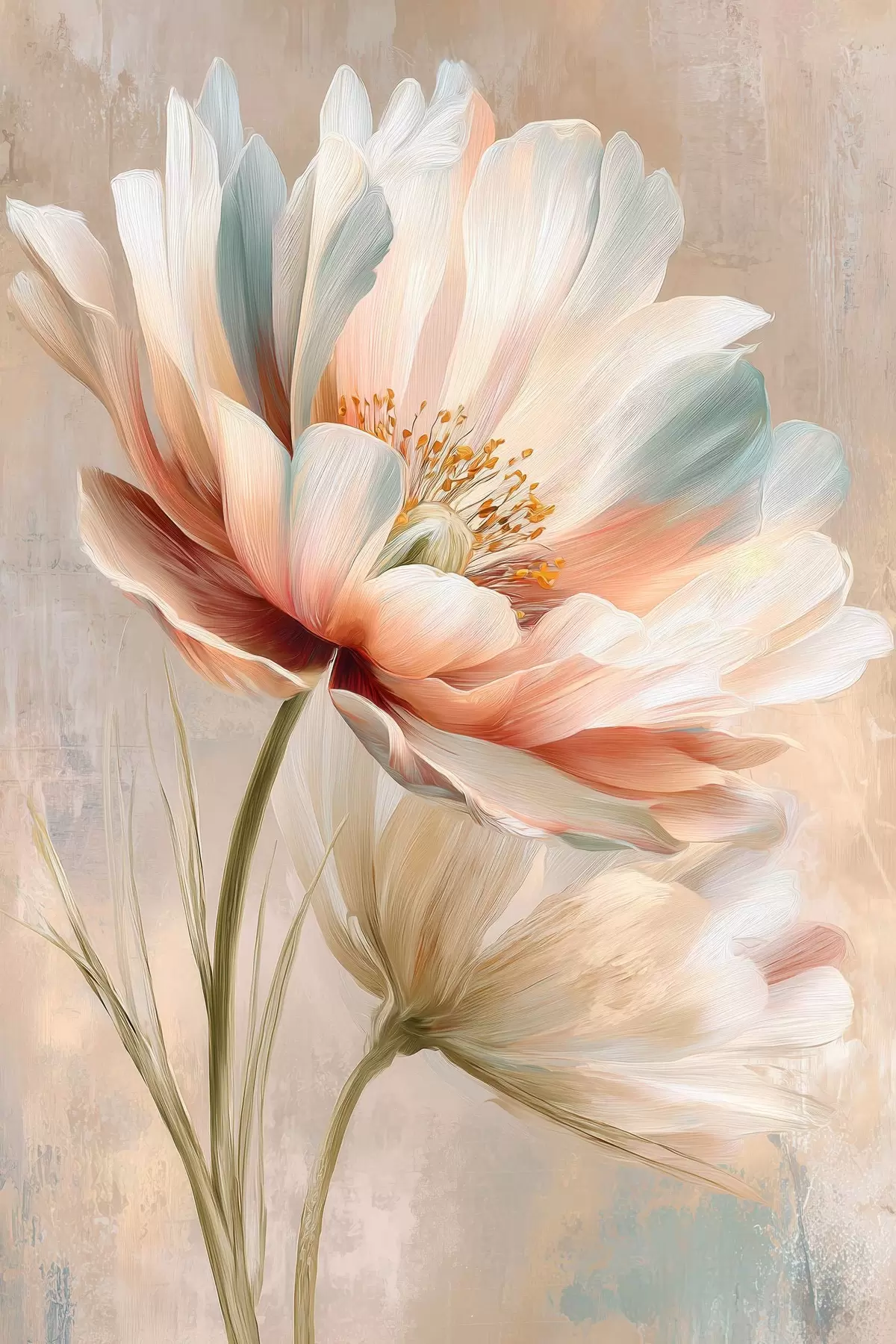 Obraz Jemné pivoňky v béžových a korálových odstínech ve stylu olejomalby Č. s48184