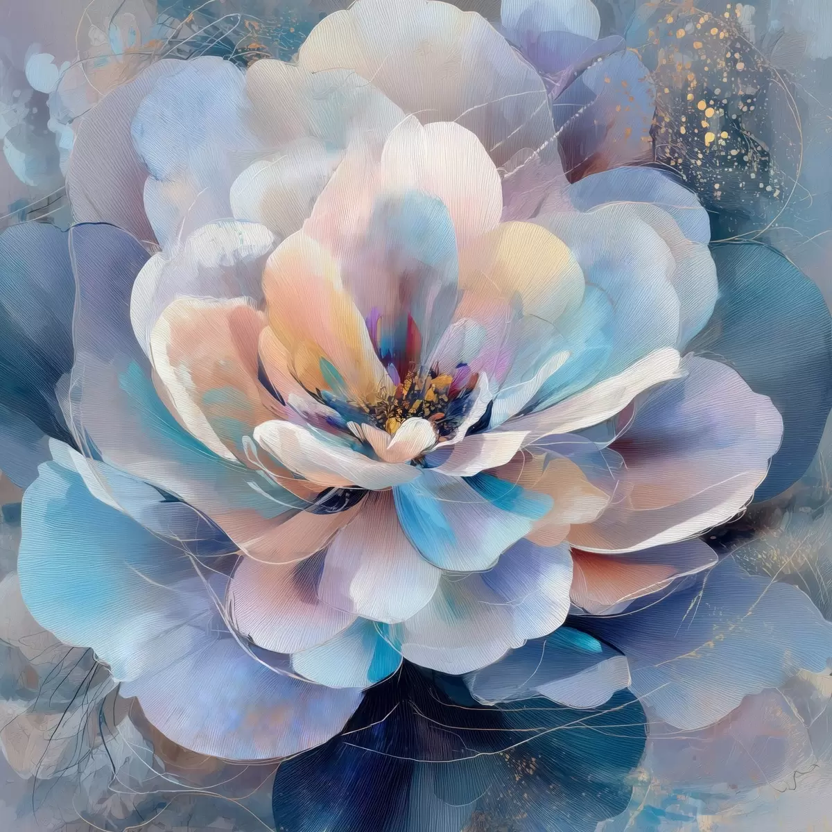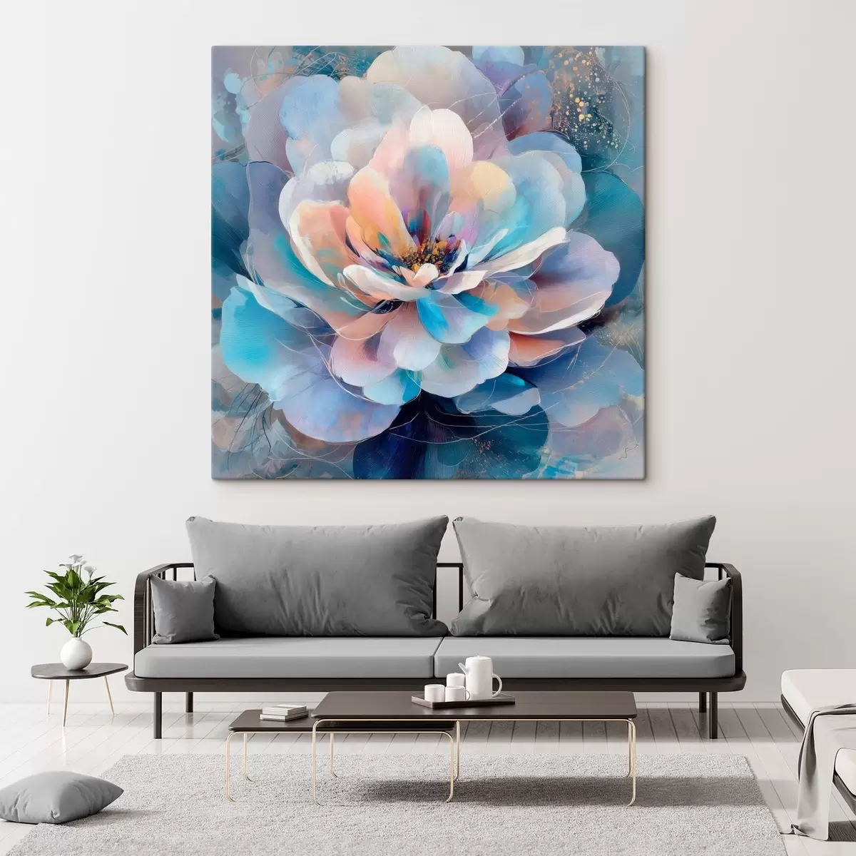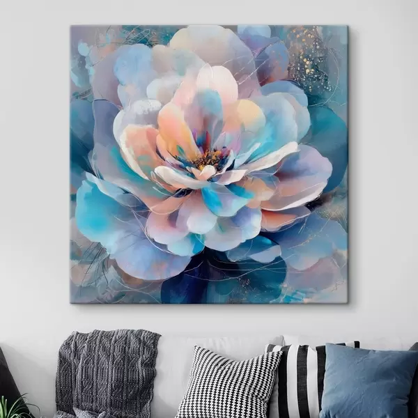 Obraz Abstraktní květina v růžovo-modré barevné škále v moderním malířském stylu Č. s48185
