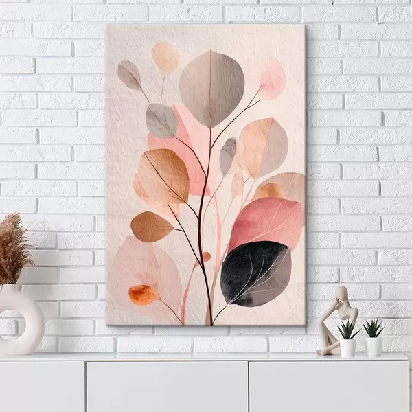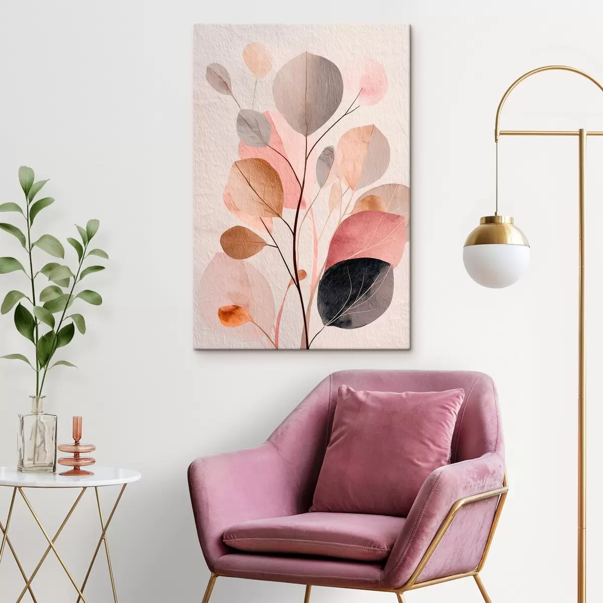Obraz Abstraktní větev s kulatými listy v teplých béžových a korálových odstínech Č. s48187