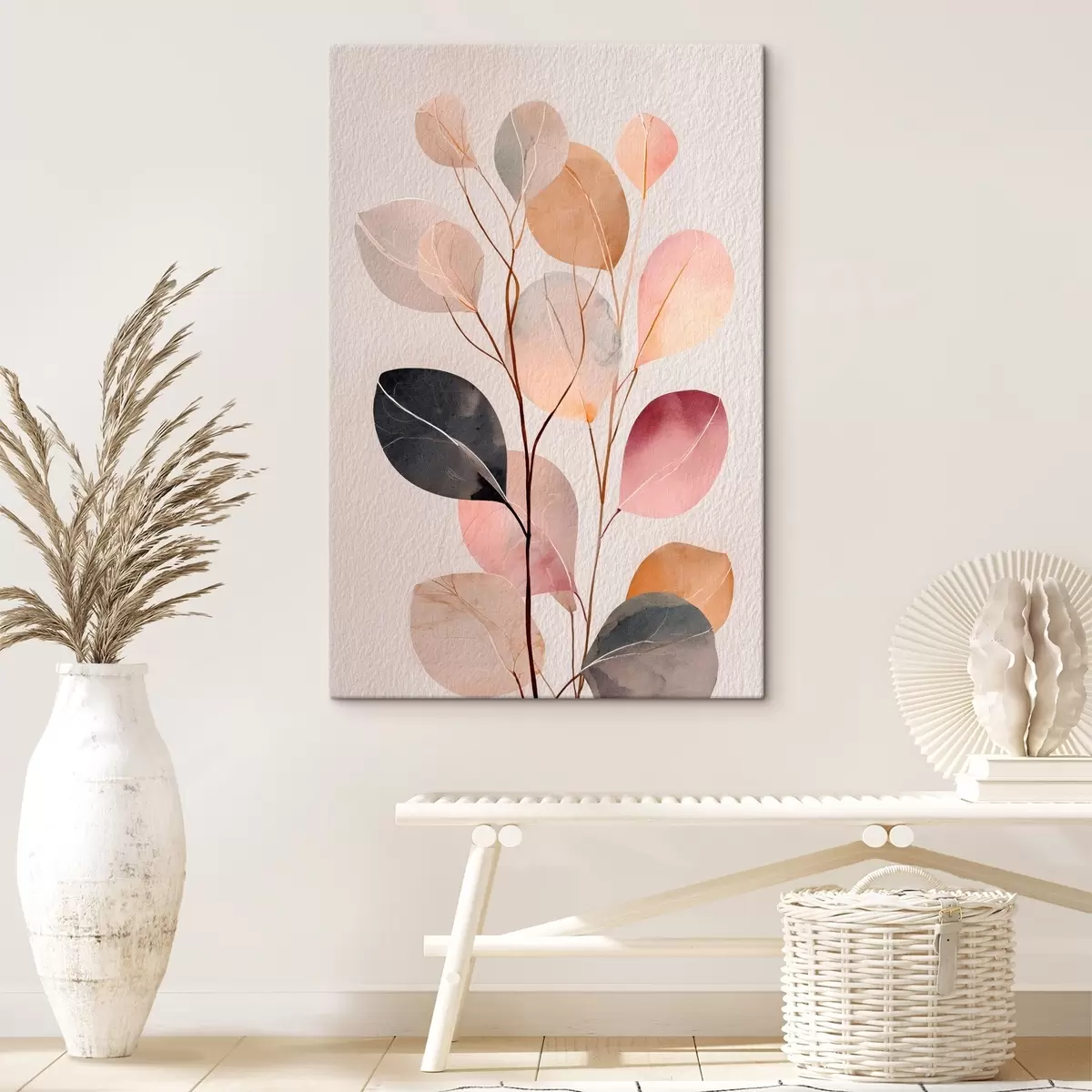 Obraz Abstraktní větvička v béžových a korálových odstínech ve stylu akvarelu Č. s48188
