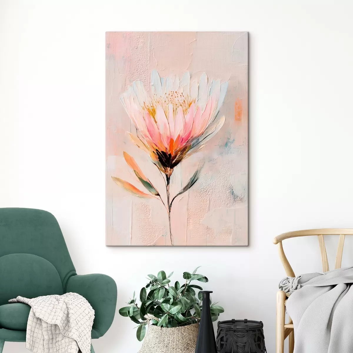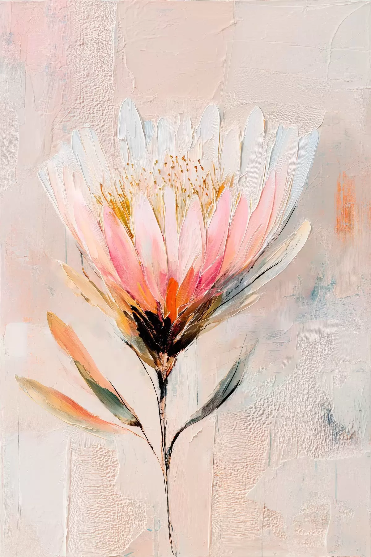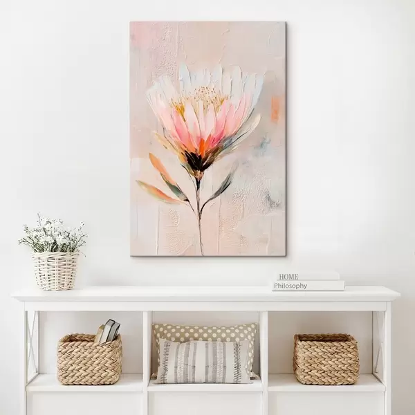Obraz Květ protey v jemných růžových tónech ve stylu olejomalby Č. s48205