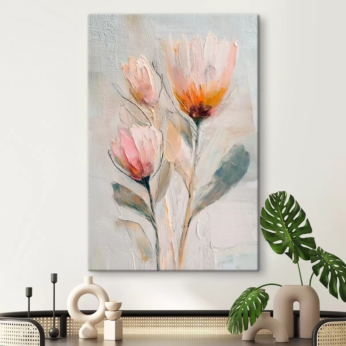 Obraz Kytice květů protey s efektem silných tahů štětcem Č. s48206