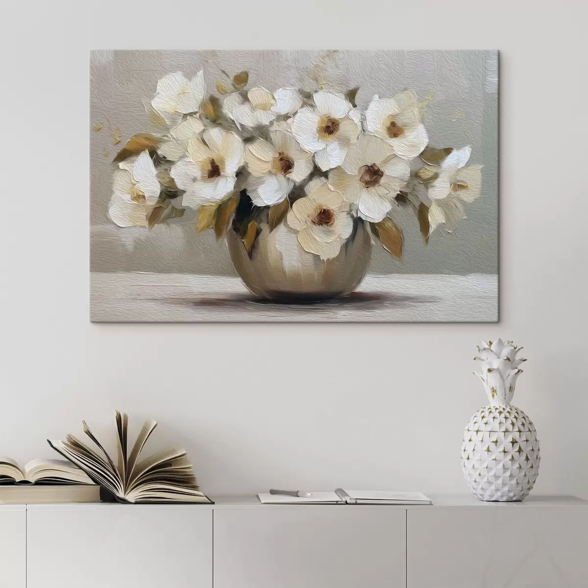 K objednání jsou k dispozici tři typy materiálu: Economic Canvas - hustý a odolný materiál pro digitální tisk, identický s malířským plátnem, voděodolný povrch, realistická reprodukce detailů, středně zrnitý materiál. Prémiové plátno - struktura připomíná malířské plátno (proplétané drobné nitě). Měkká, detailní reprodukce obrazu na matném povrchu. Eco-Premium - vysoce kvalitní tkanina ze 100% bavlny. Díky přírodním bavlněným vláknům je materiál trvanlivý a odolný proti opotřebení. Vynikající reprodukce barev a detailů.