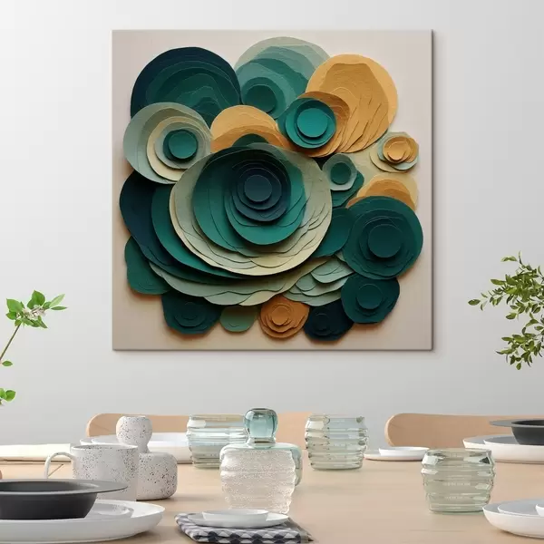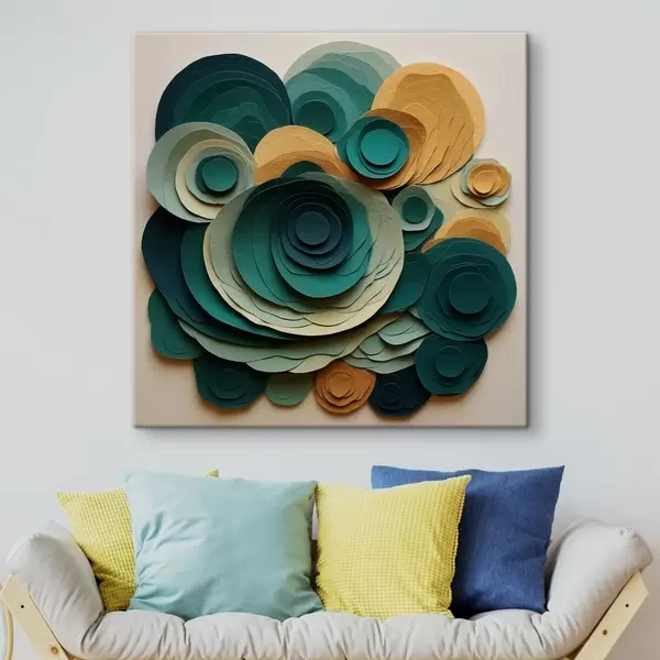 Obraz Vrstvené papírové kruhy v zelených a béžových odstínech Č. s48332