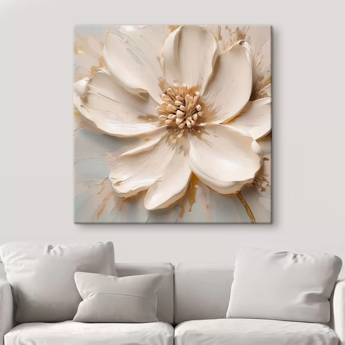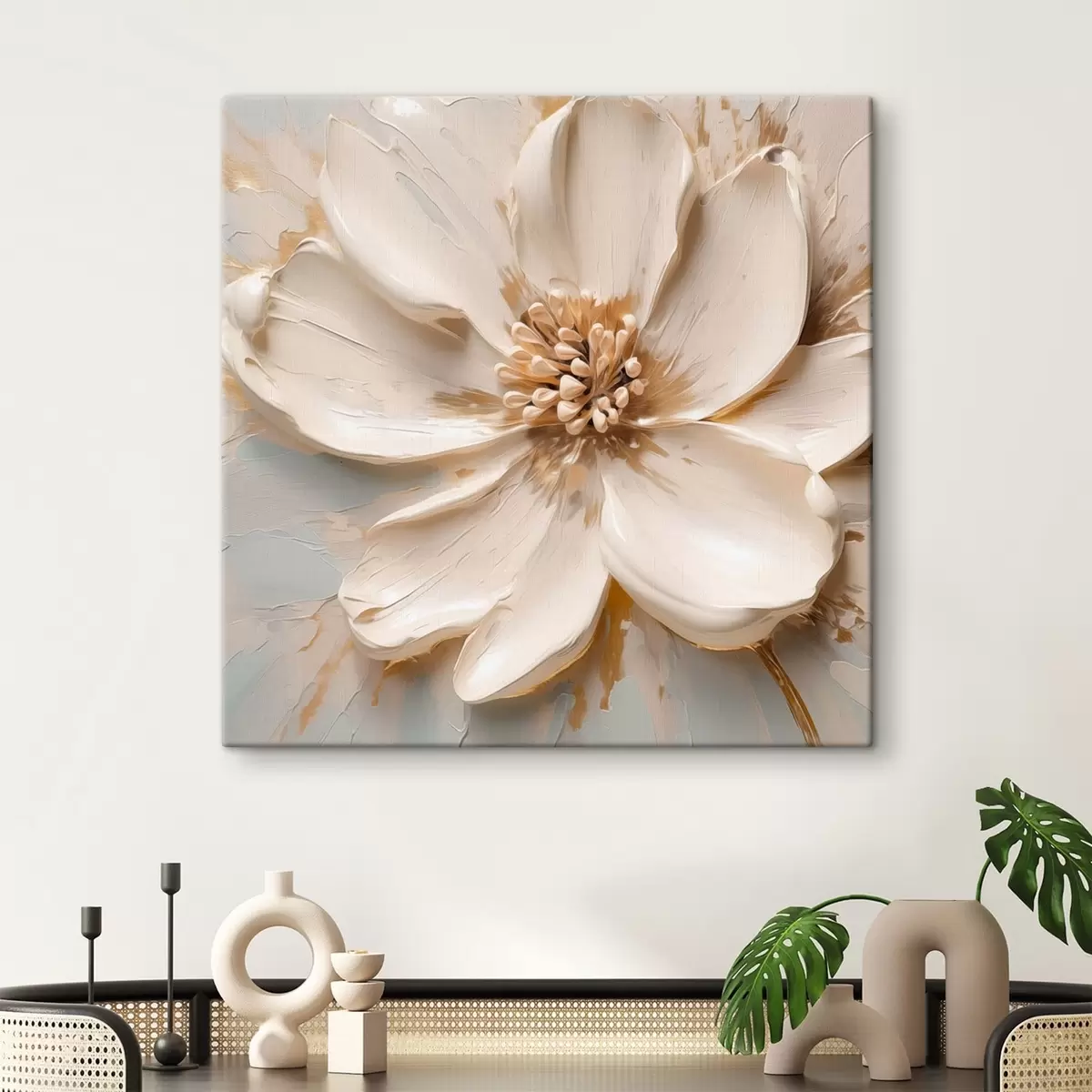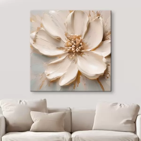 Obraz Bílá květina s reliéfním vzorem v jemných tónech Č. s48339