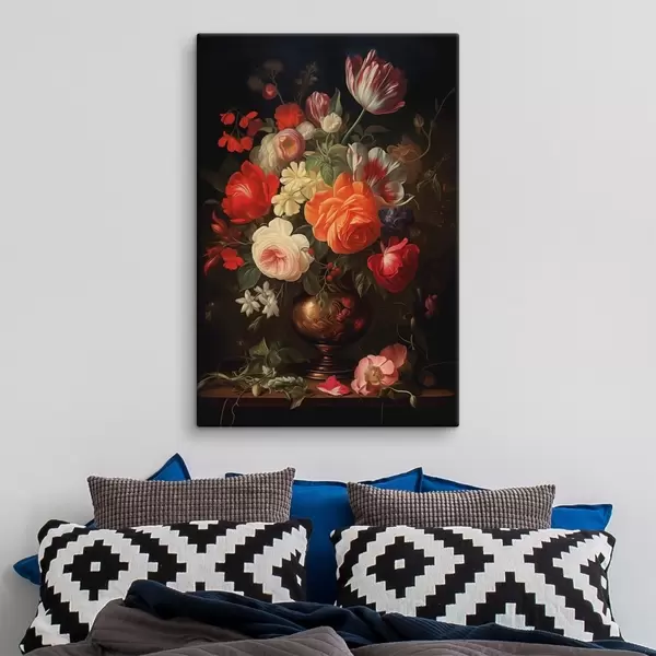 Obraz Kytice ve váze na tmavém pozadí Č. s48351