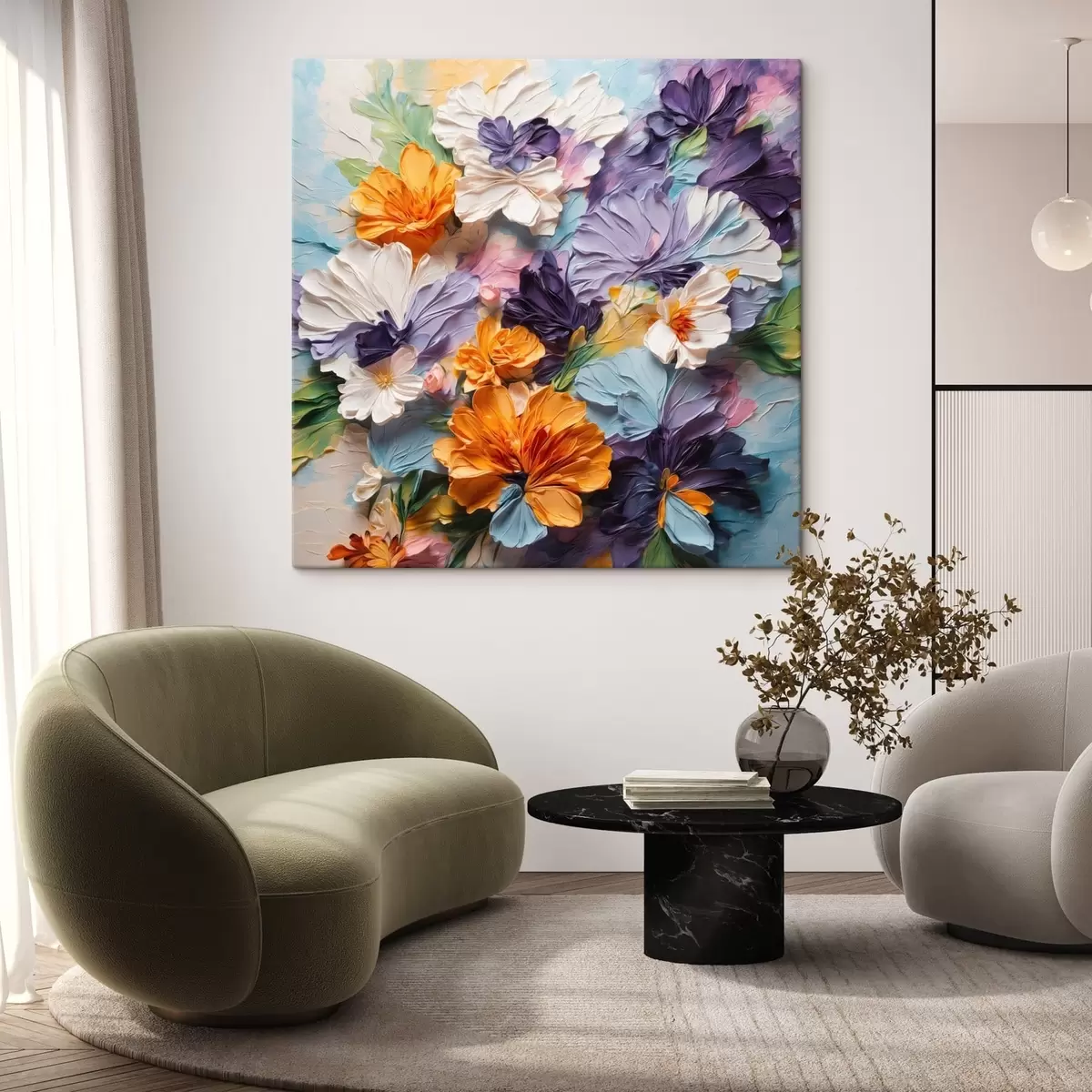 Obraz Zářivé květy s výraznou strukturou na pastelovém pozadí Č. s48363