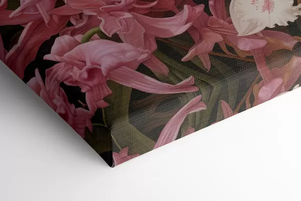 Obraz Kytice tropických květin, orchideje se zelenými listy v pozadí Č. s48385