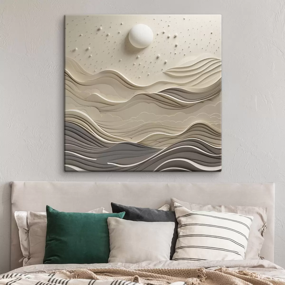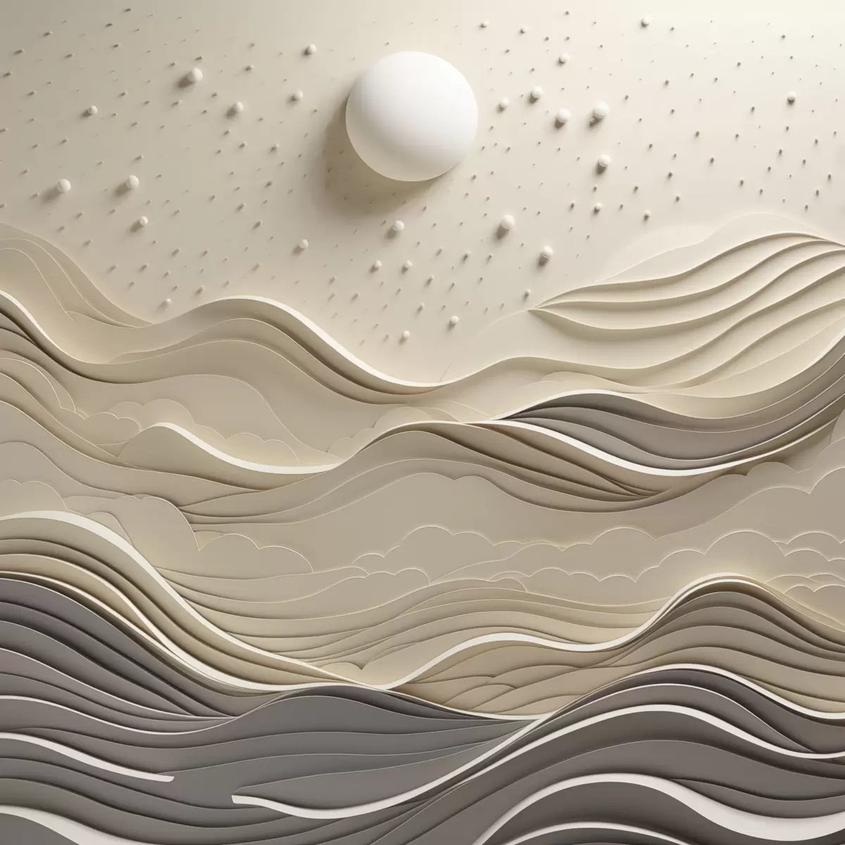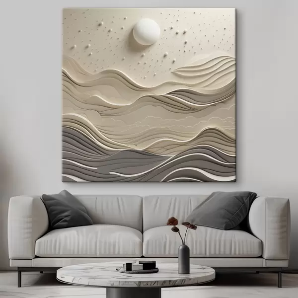 Obraz Minimalistická stylizovaná krajina s vlnícími se kopci a velkým měsícem na hvězdné obloze, abstraktní umění Č. s48402