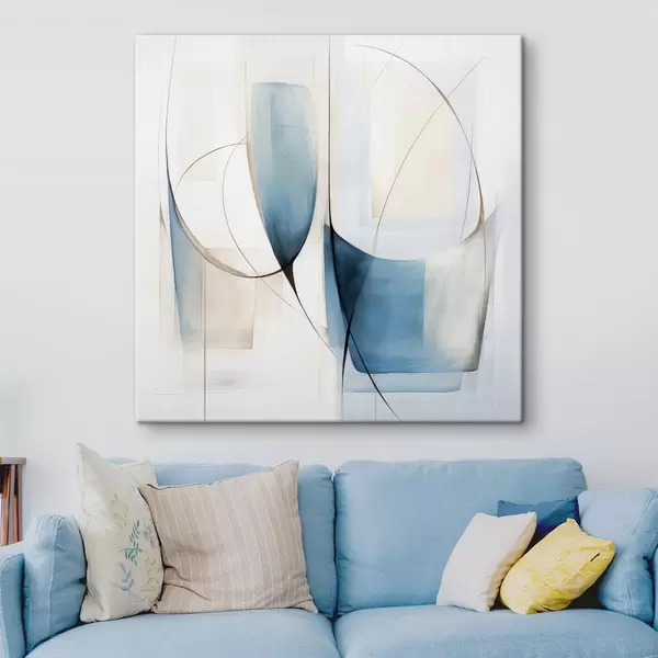 Obraz Abstraktní minimalistická kompozice s modrými a béžovými tvary Č. s48403