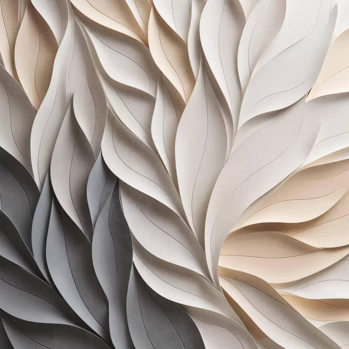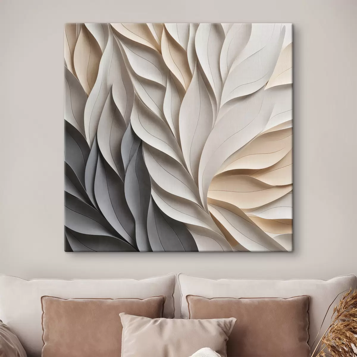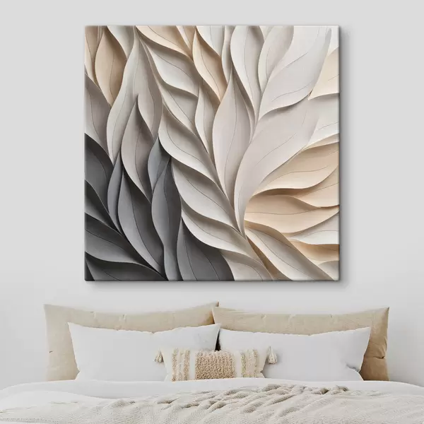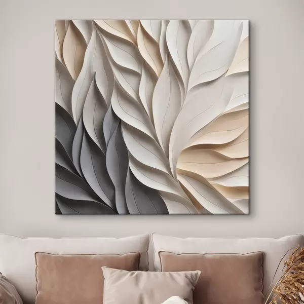 Obraz Texturovaný vzor s překrývajícími se abstraktními listovými tvary v neutrálních odstínech béžové, krémové a šedé Č. s48407