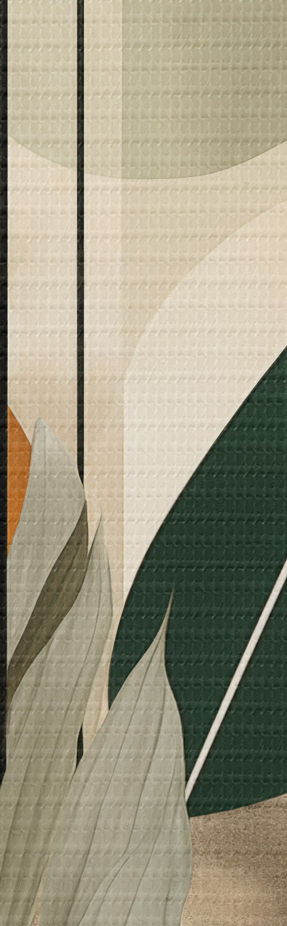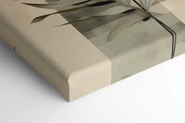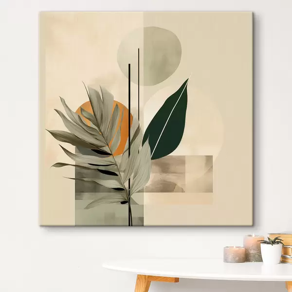 Obraz Tmavě zelená rostlina s abstraktními geometrickými tvary a akvarelovými texturami v béžové a zelené barvě Č. s48410