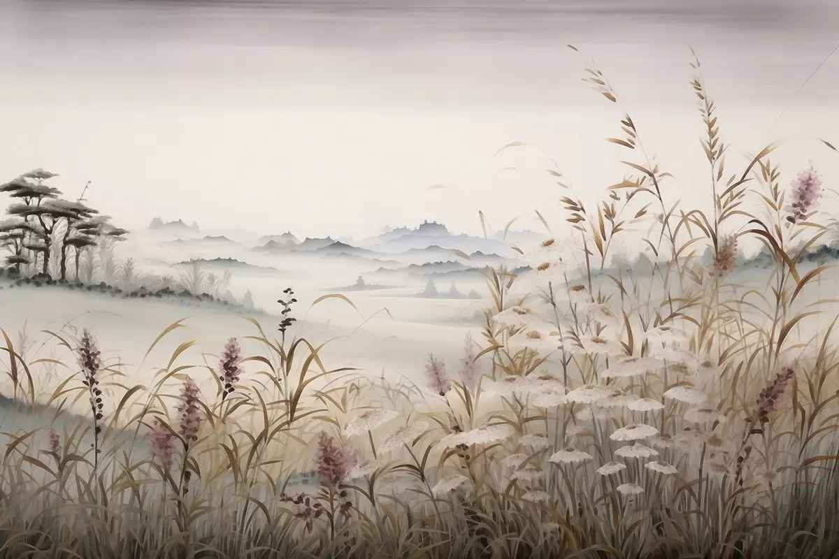 Obraz Zamlžená krajina s travinami Č. s48481