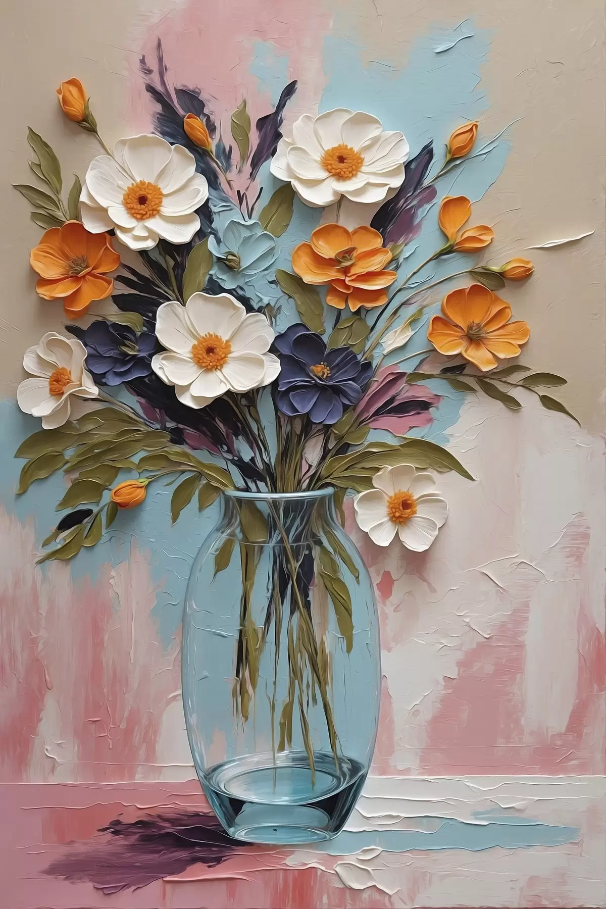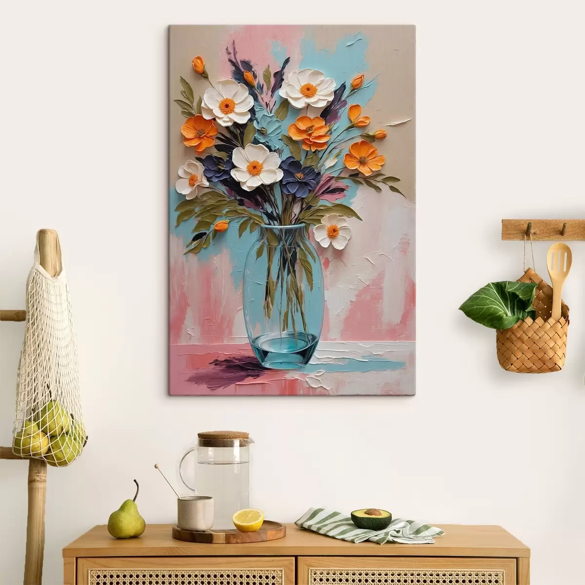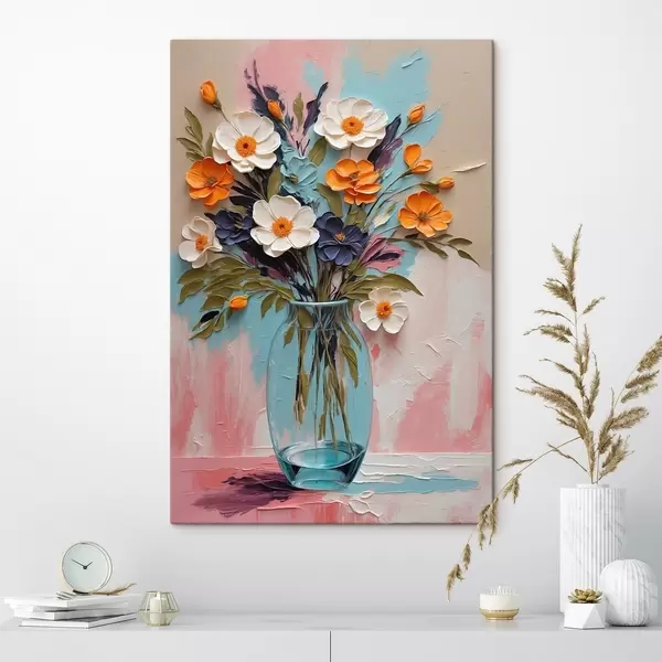 Obraz Kytice ve skleněné váze na barevném pozadí Č. s48488