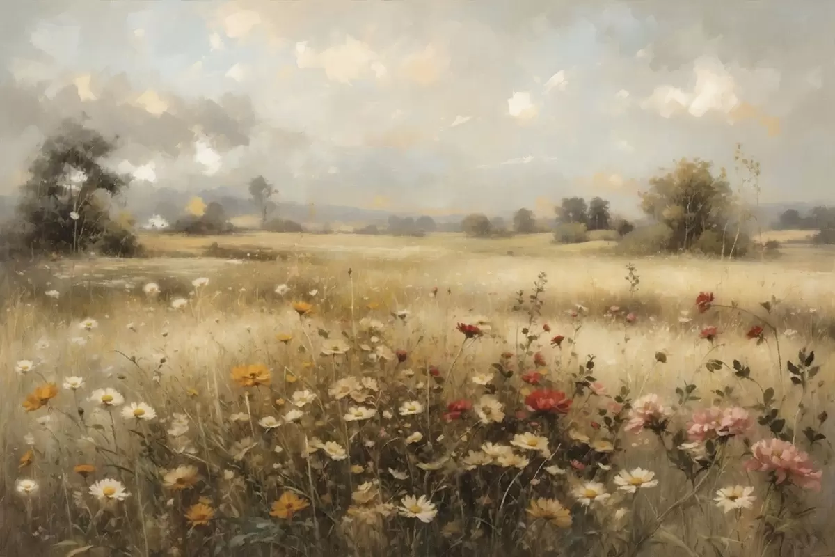 Obraz Luk plný divokých květin v jemném světle Č. s48491