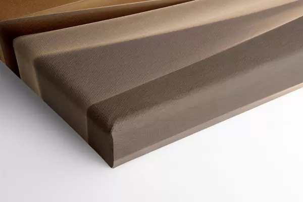 Standardní - hladký, zrnitý syntetický materiál s lesklým povrchem.