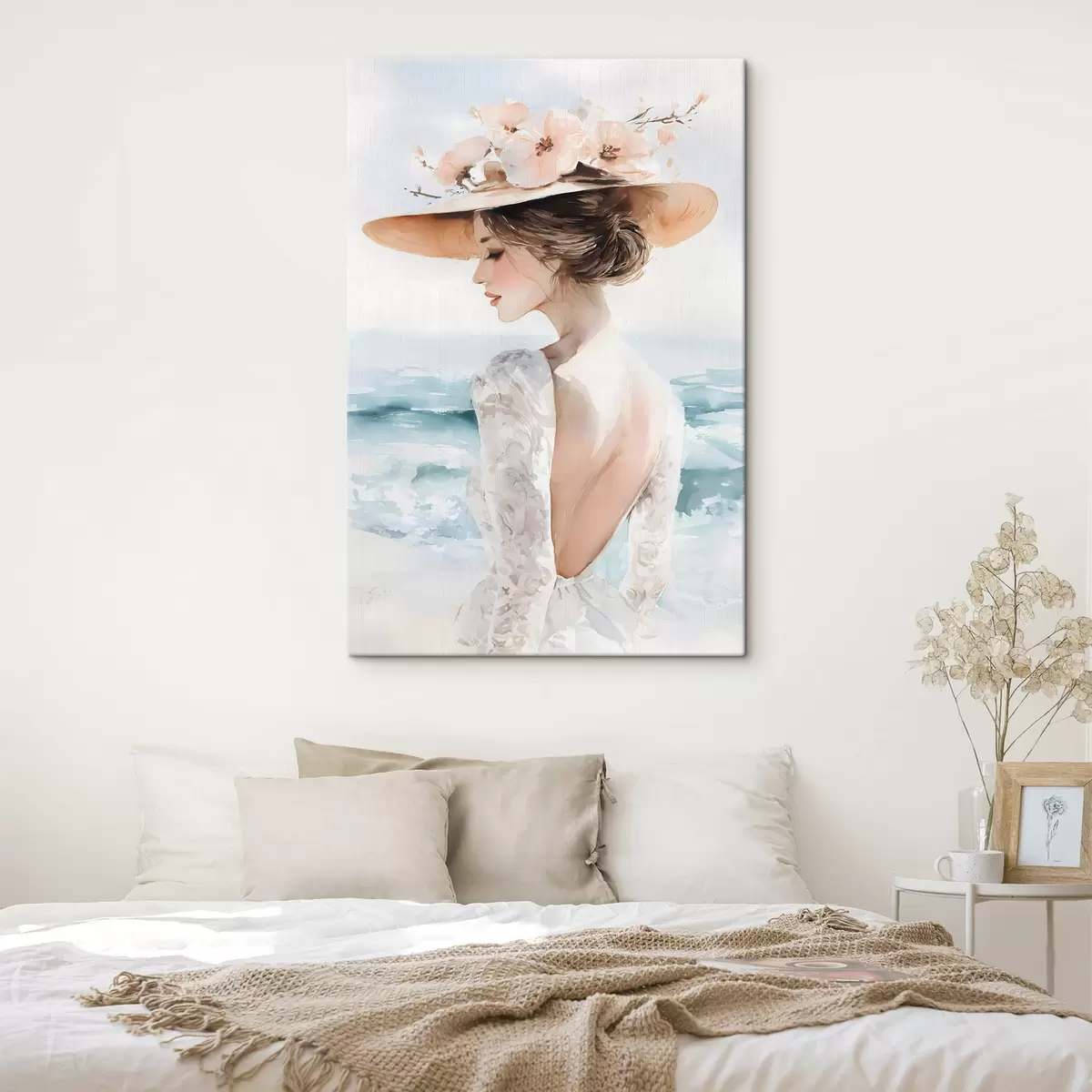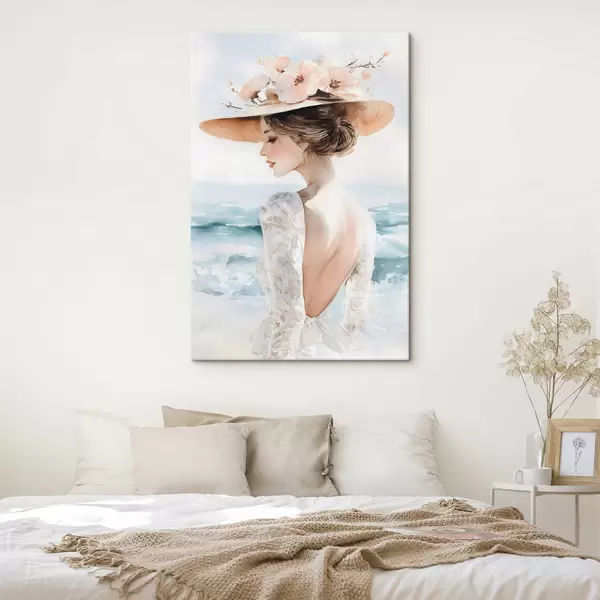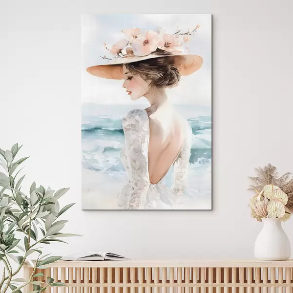 Obraz romantická dívka u moře v klobouku Č. s48547