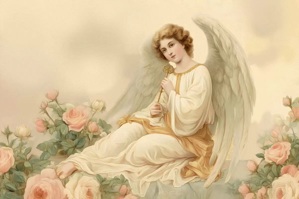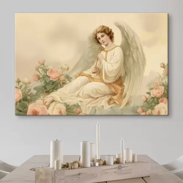 Obraz anděl mezi květinami ve stylu olejomalby Č. s48554