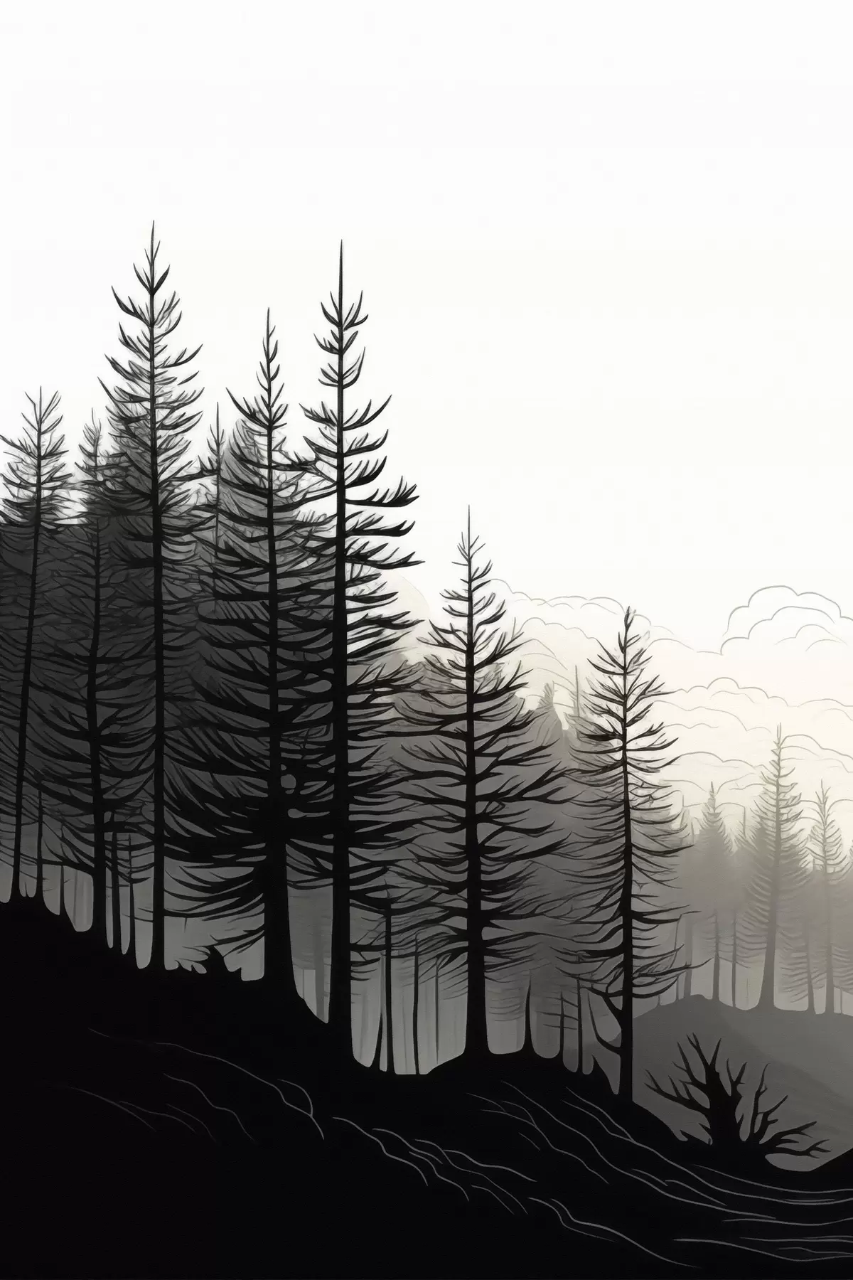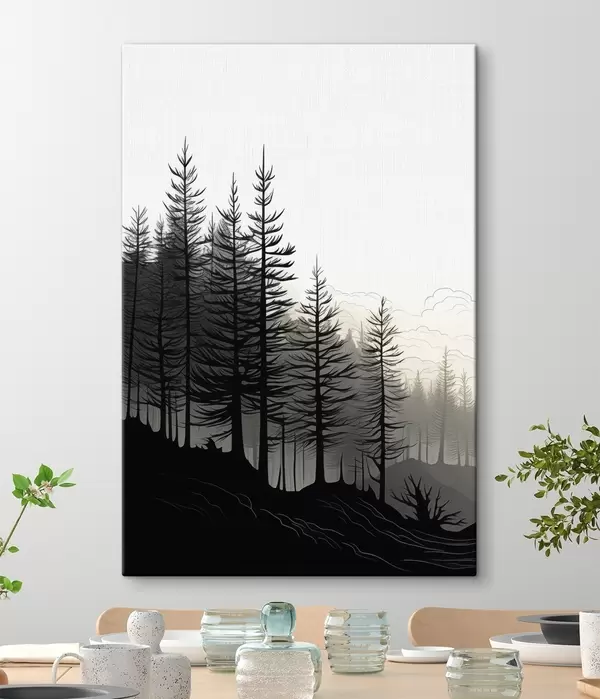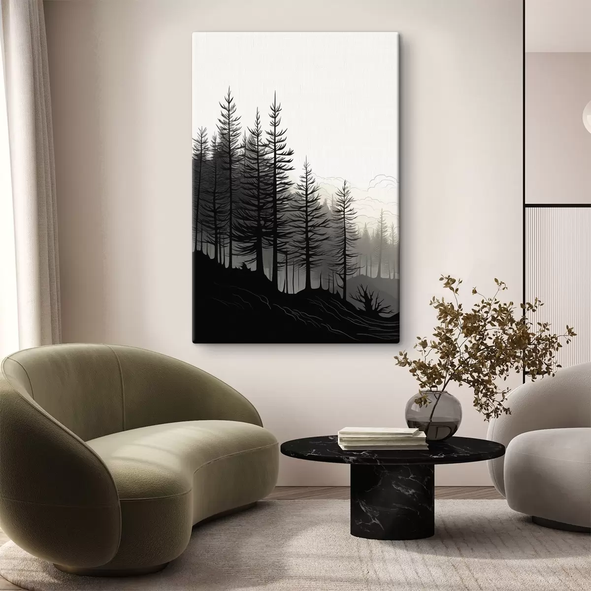 Obraz Zamlžený les, černobílá krajina Č. s48573