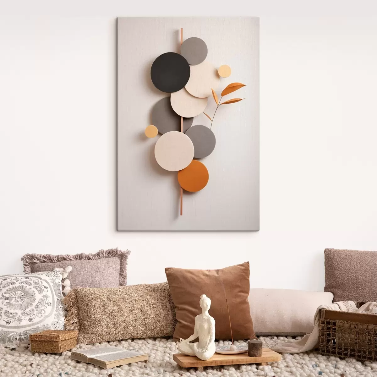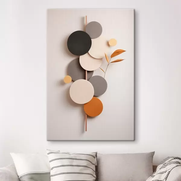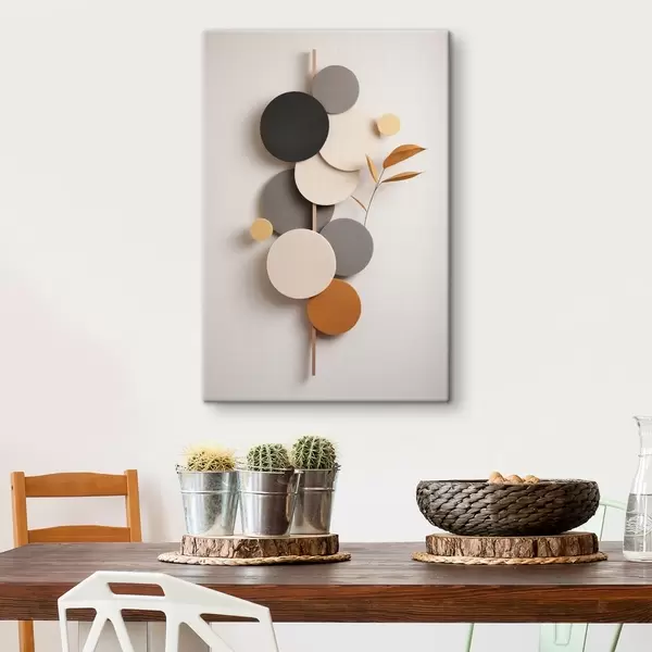 Obraz Abstraktní kruhy s listy v neutrálních odstínech Č. s48602