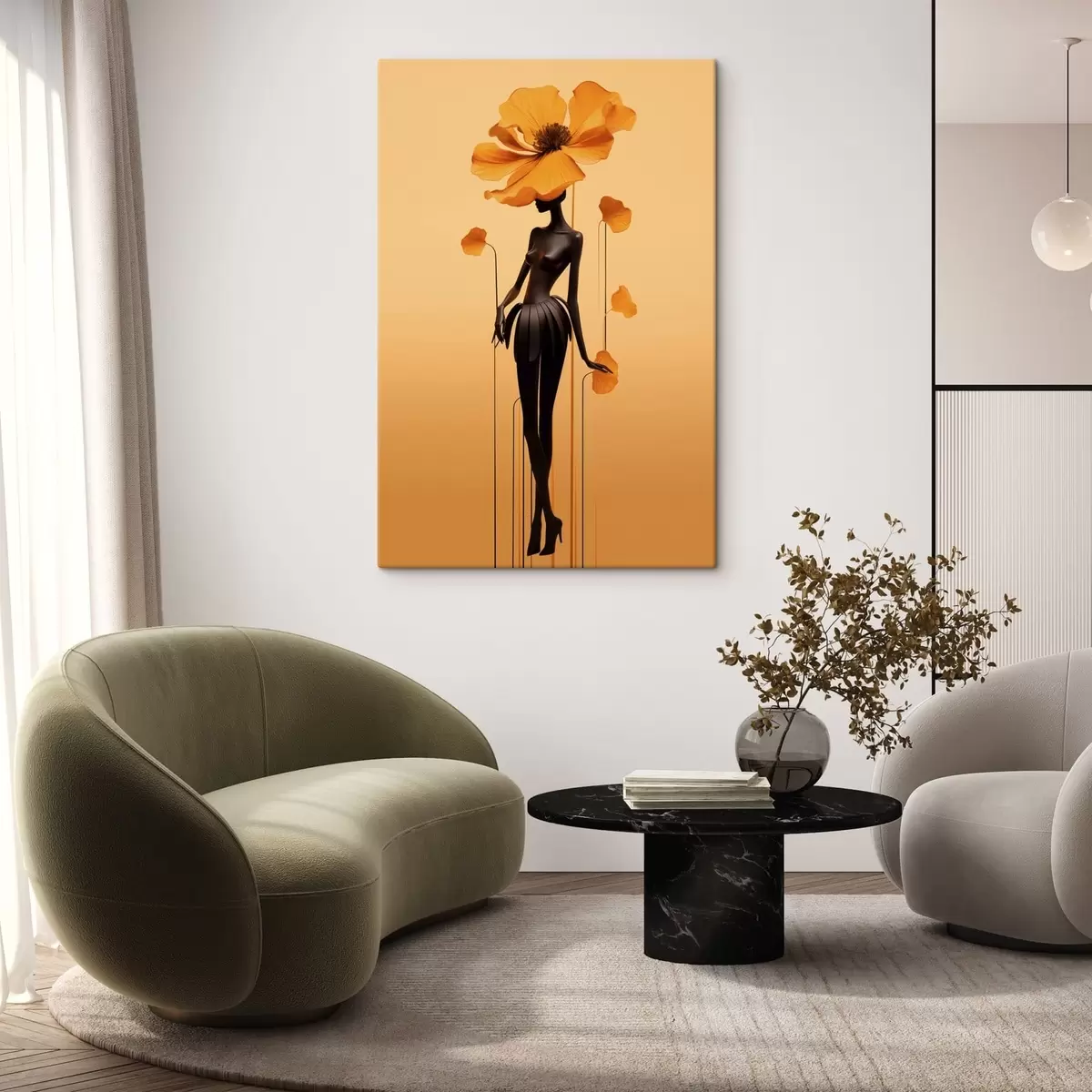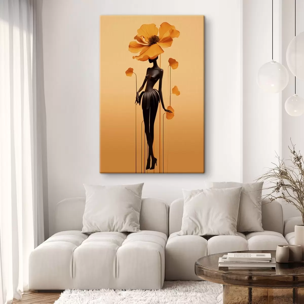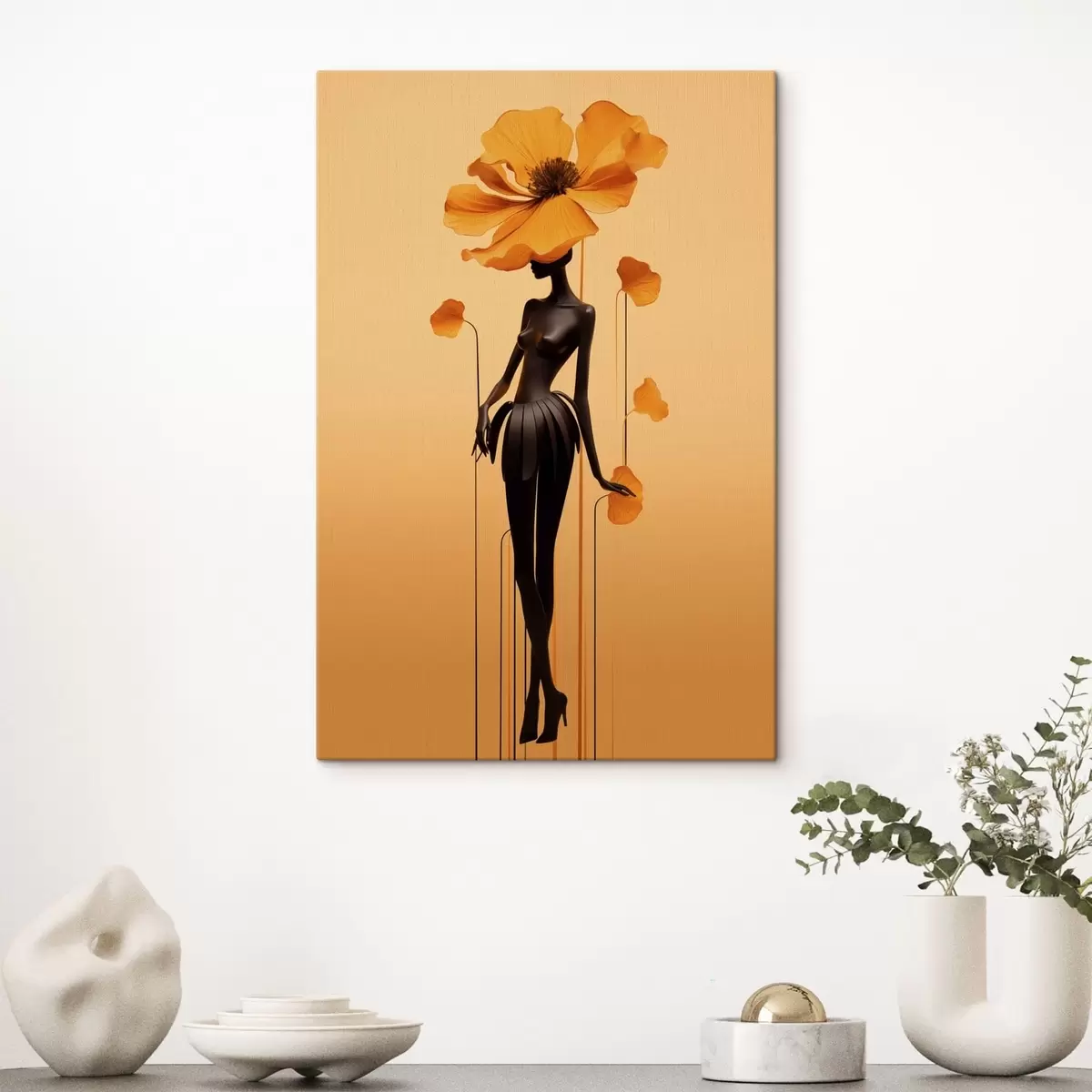 Obraz Elegantní postava s květinami na pozadí s teplým přechodem Č. s48619