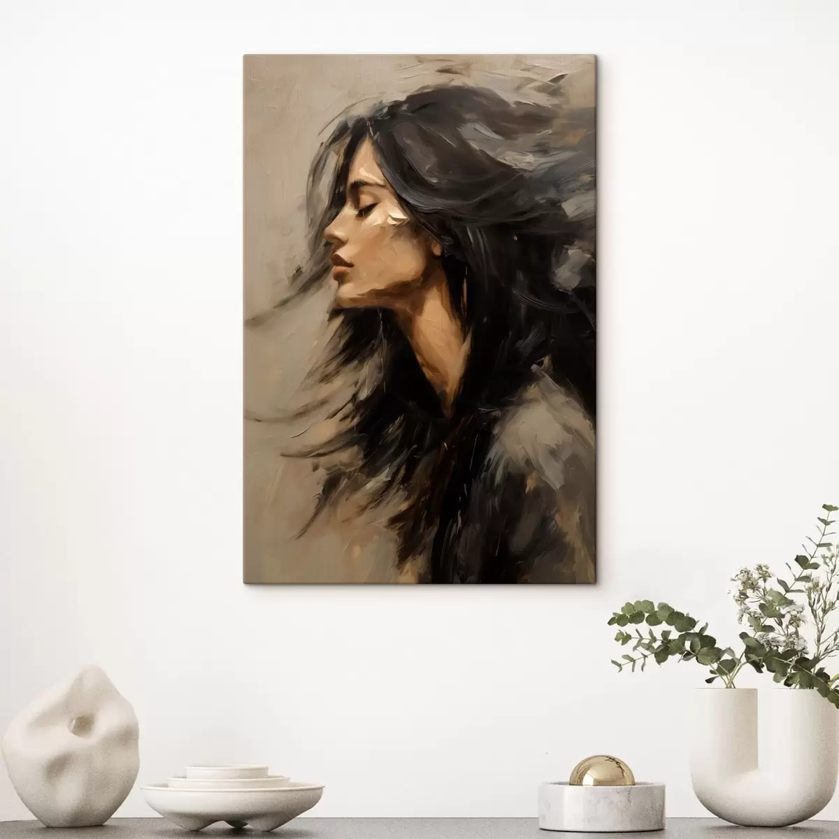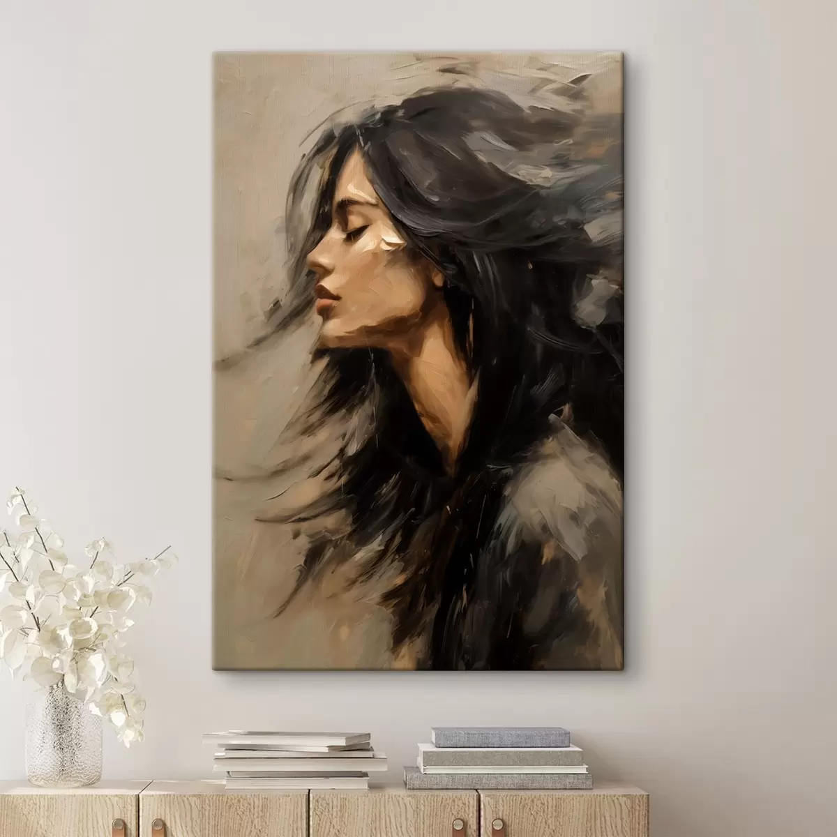 Obraz Portrét ženy s rozpuštěnými vlasy v malířském stylu Č. s48622