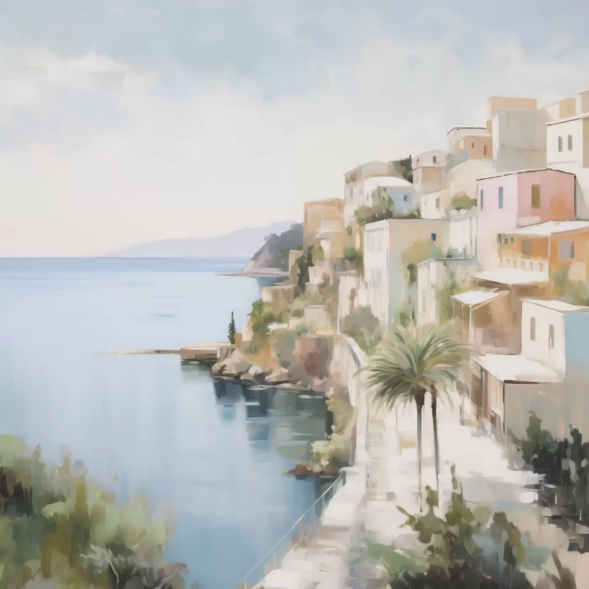Obraz Krajina města u moře, malířská imitace Č. s48674