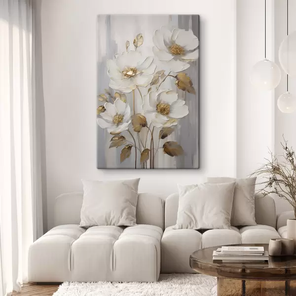 Obraz Bílé květy se žlutými akcenty na strukturovaném pozadí Č. s48722