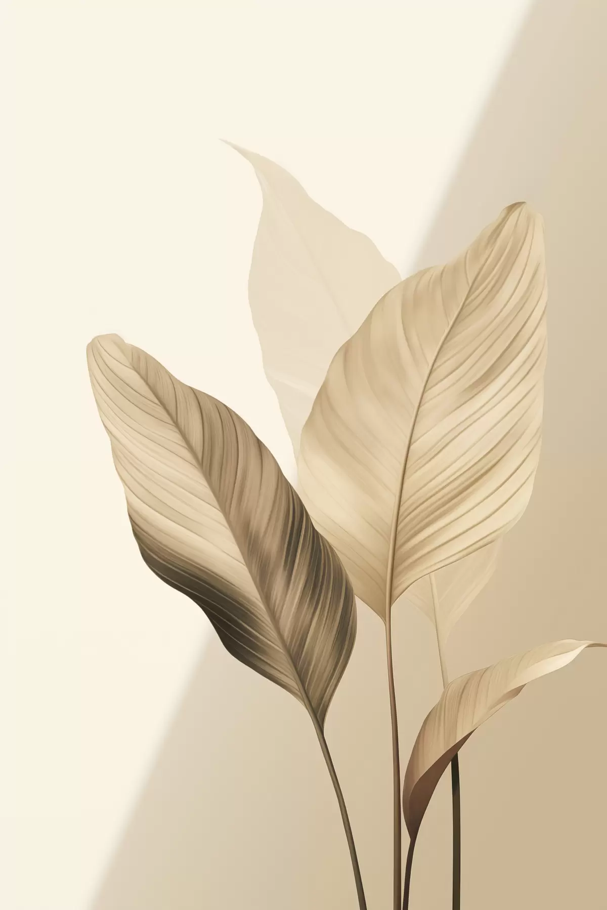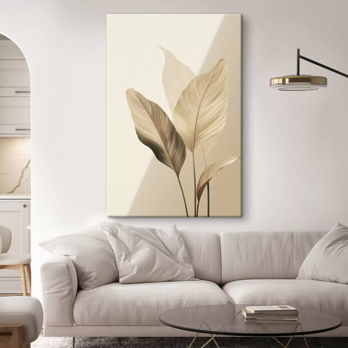 Obraz Velké tropické listy v odstínech béžové a hnědé, světlé pozadí Č. s48726