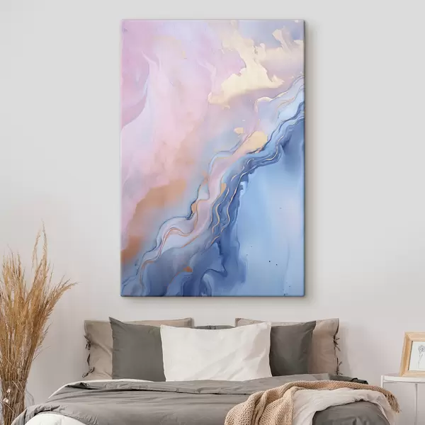 Obraz Abstraktní texturované fluidní umění s vířícími vzory v růžových a modrých barvách Č. s48729