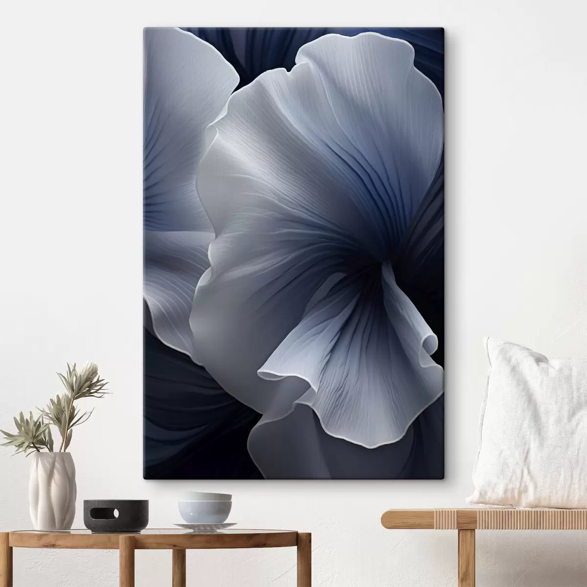 Obraz Abstraktní modrobílé okvětní lístky na tmavém pozadí Č. s48731