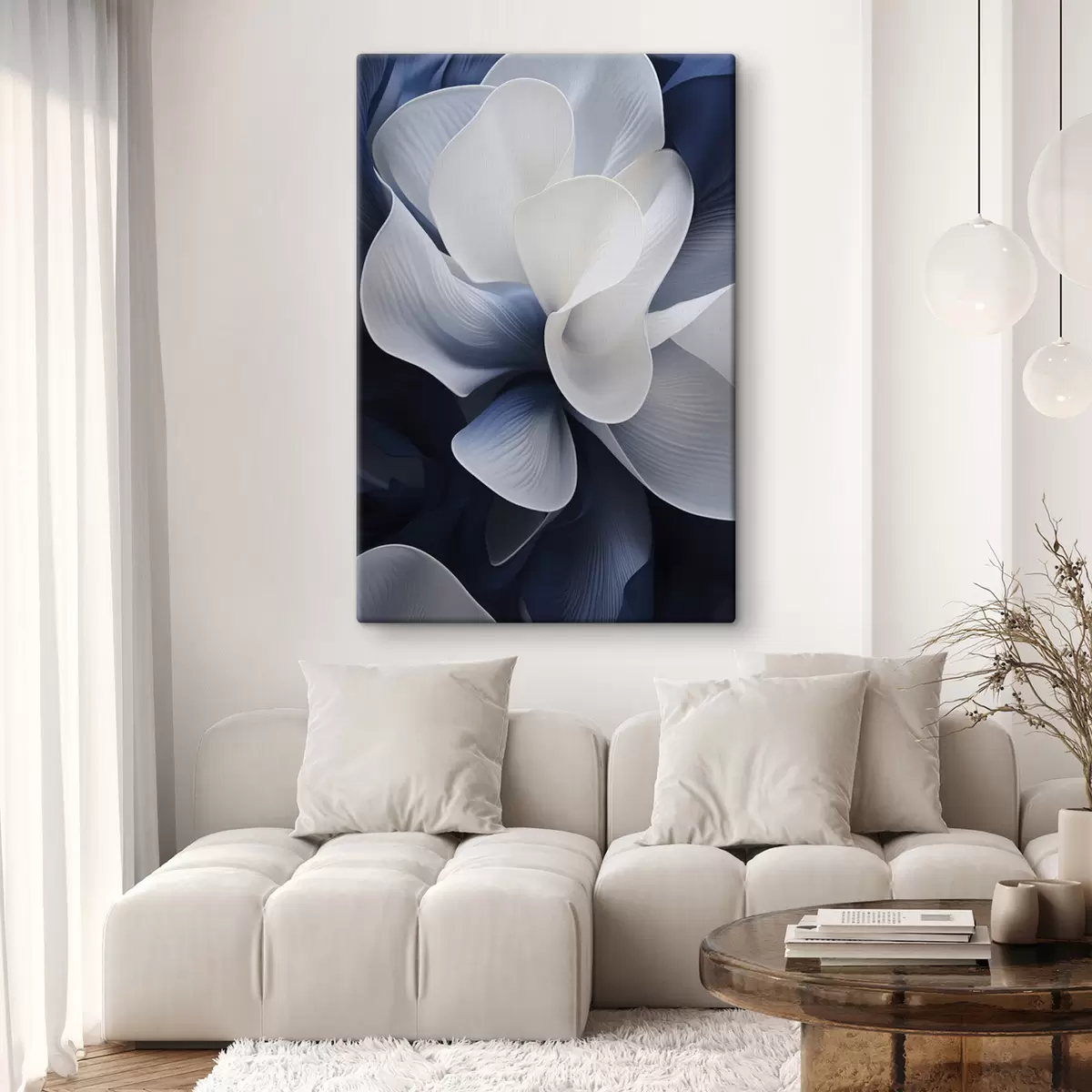 Obraz Abstraktní modrobílé okvětní lístky na tmavém pozadí Č. s48732