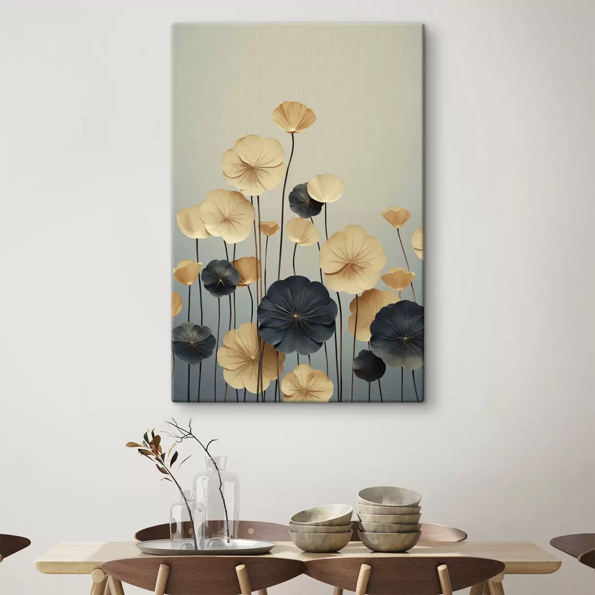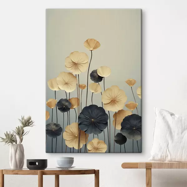 Obraz Listy leknínu na tlumeném pozadí v odstínech béžové a tmavě modré Č. s48734